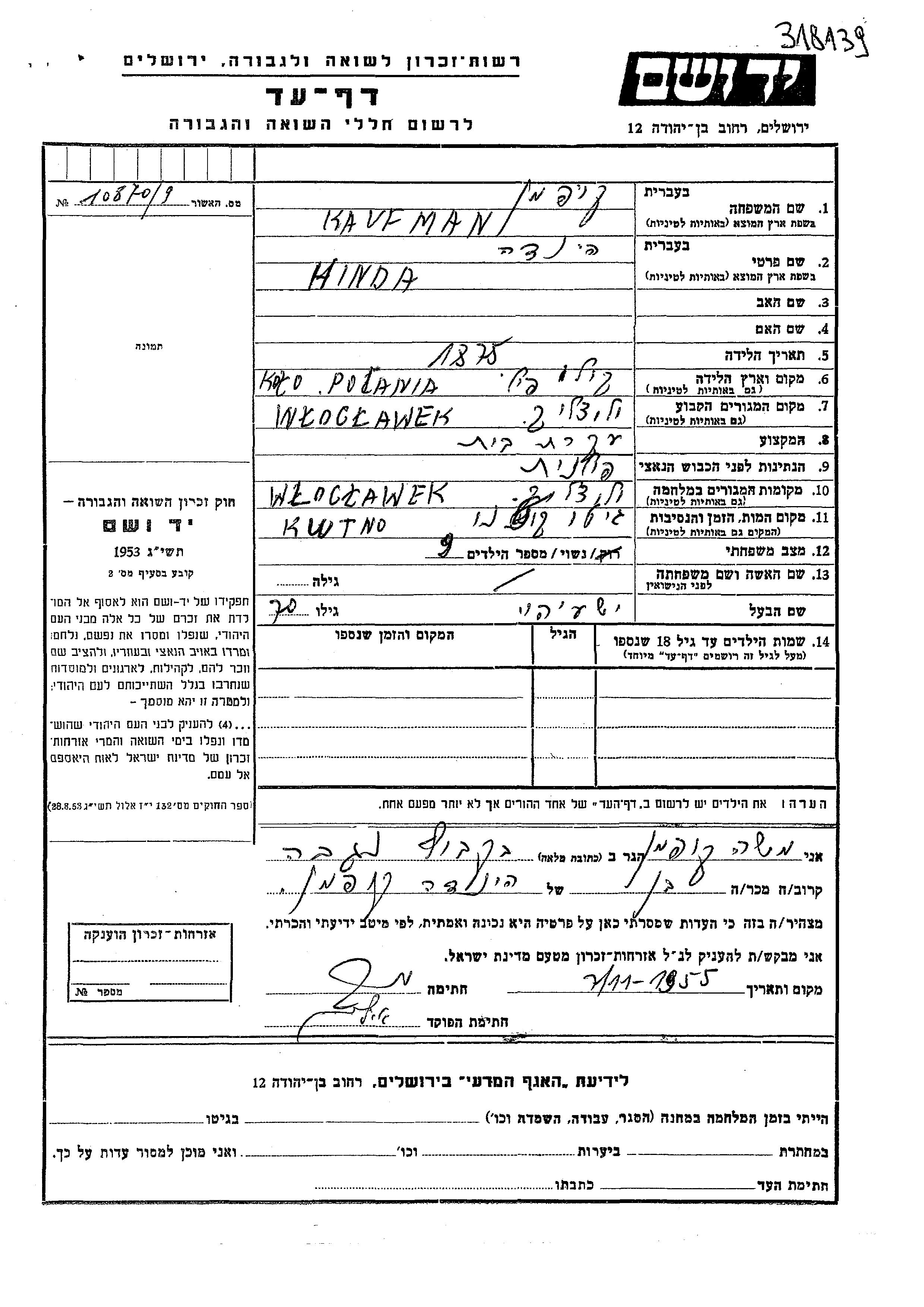 Yad Vashem - Pages of Testimony Names Memorial Collection