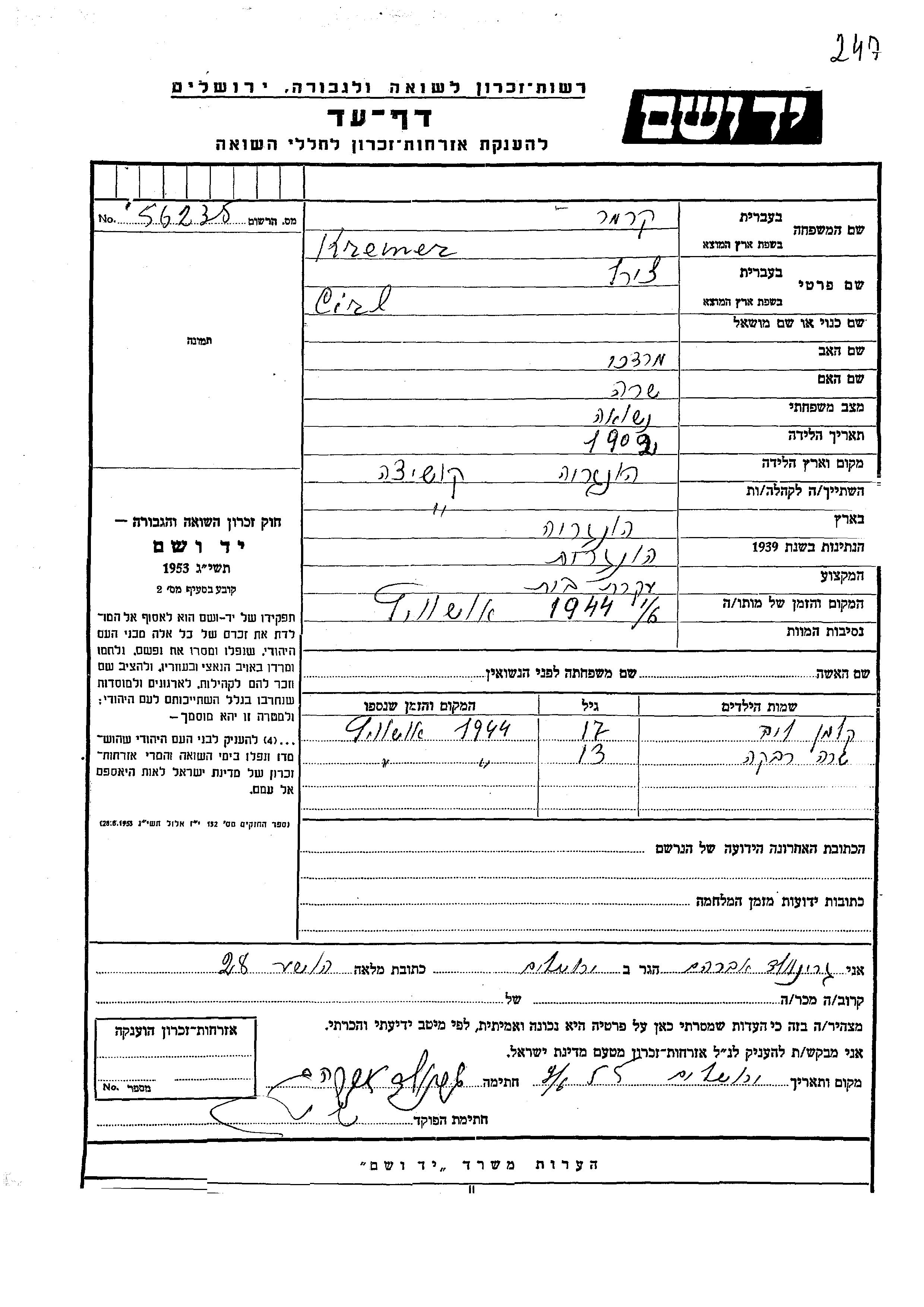 Yad Vashem - Pages of Testimony Names Memorial Collection