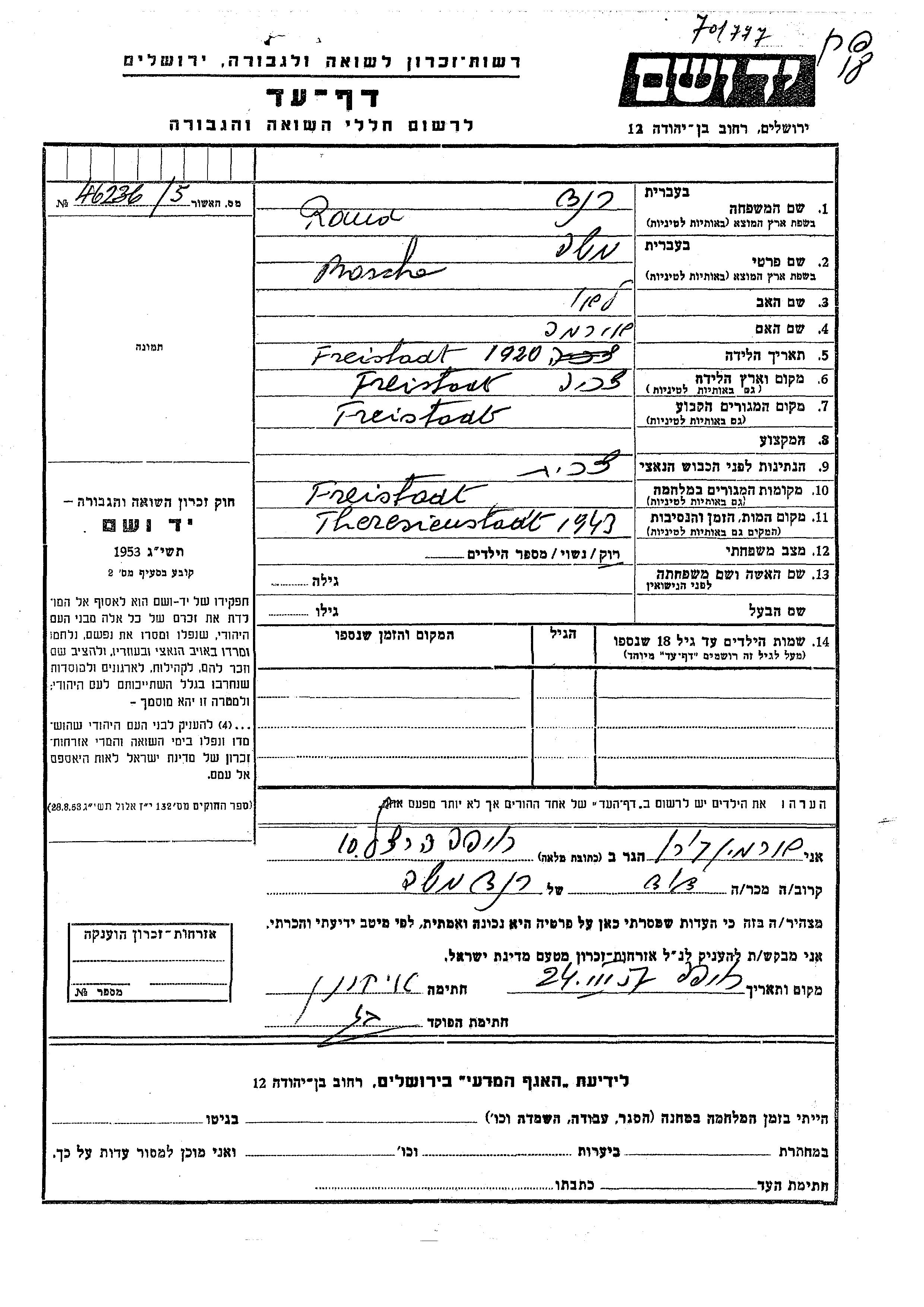 Yad Vashem - Pages of Testimony Names Memorial Collection