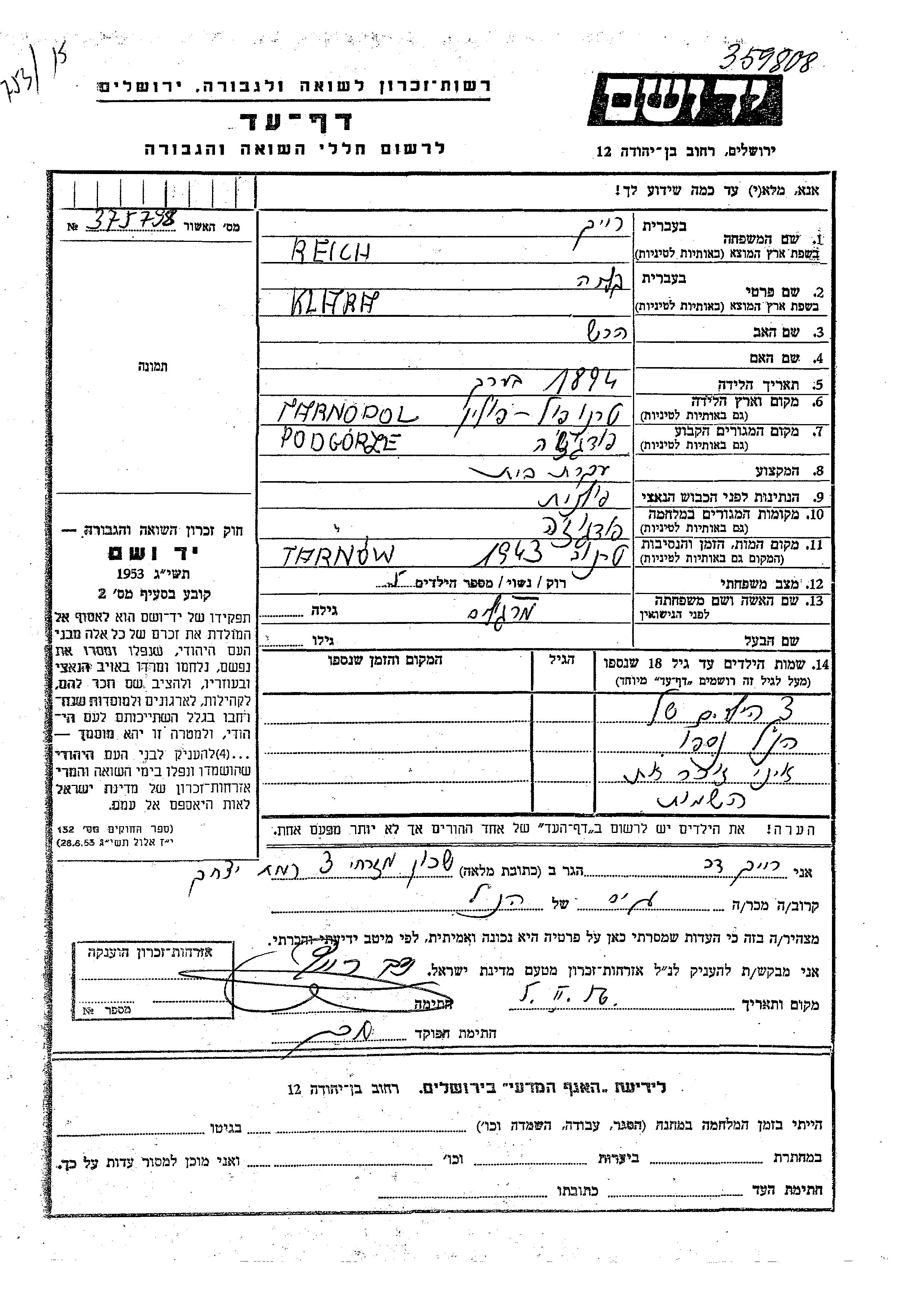 Yad Vashem - Pages of Testimony Names Memorial Collection