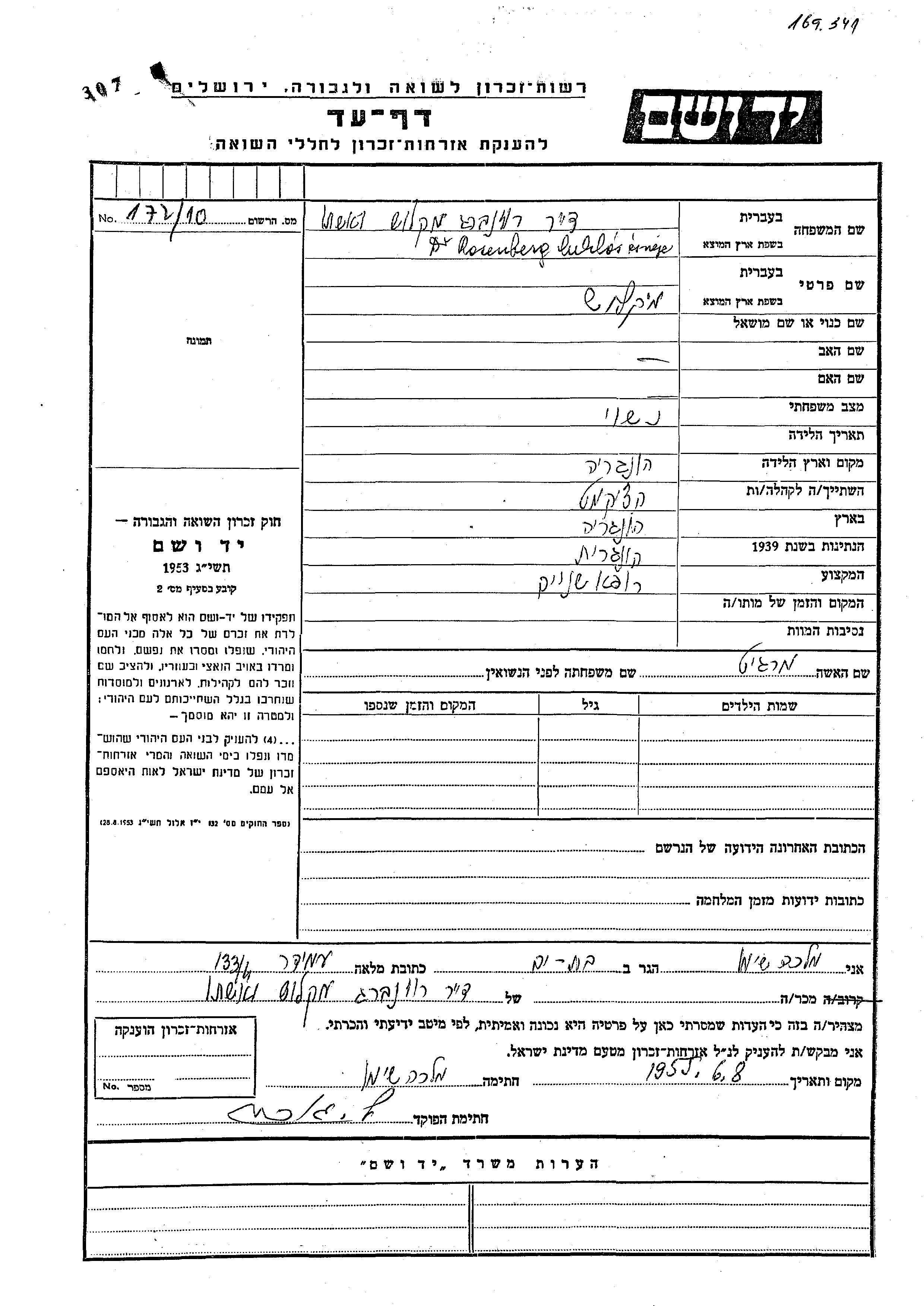 Yad Vashem - Pages of Testimony Names Memorial Collection