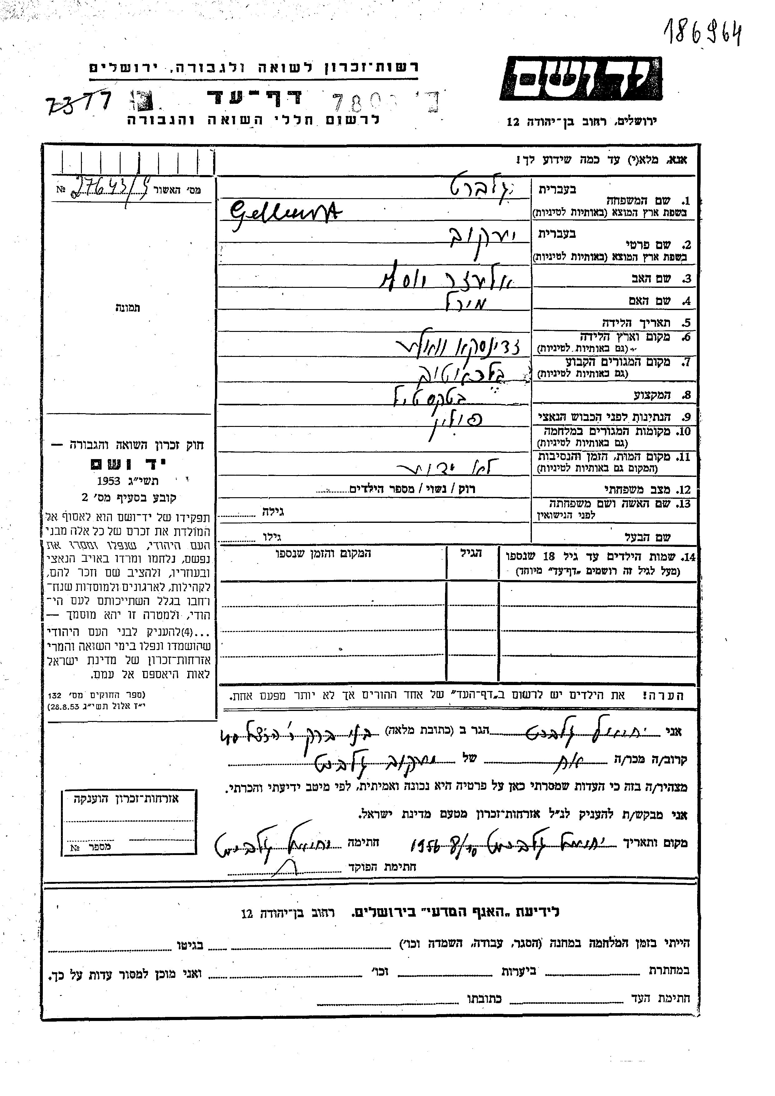 Yad Vashem - Pages of Testimony Names Memorial Collection