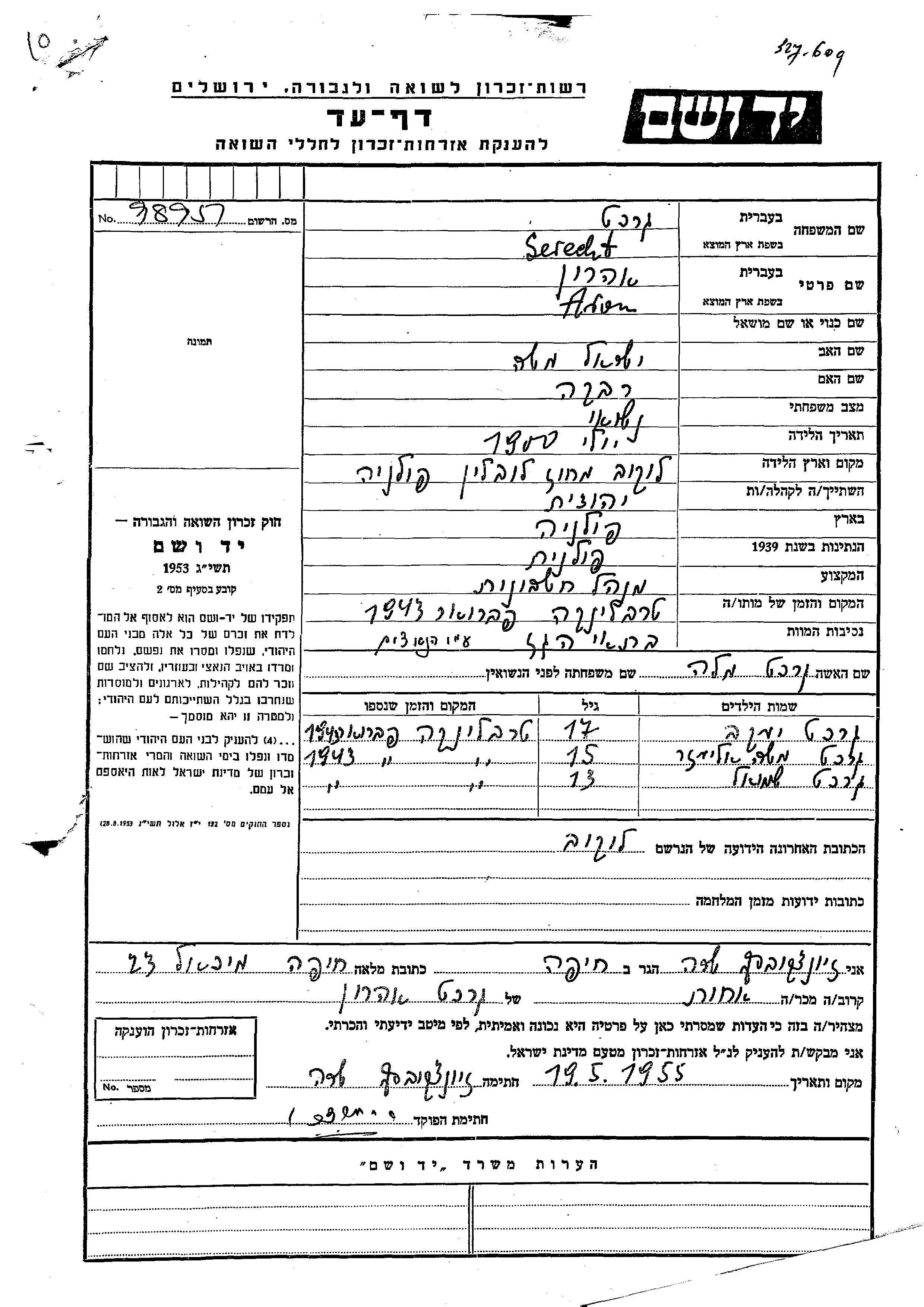 Yad Vashem - Pages of Testimony Names Memorial Collection