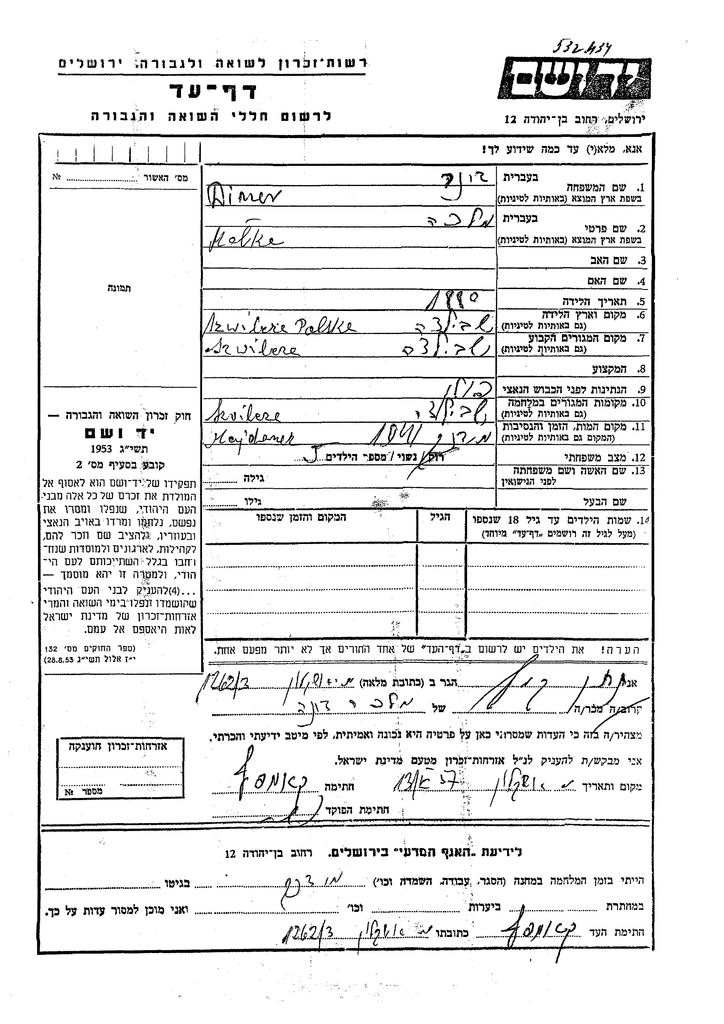 Yad Vashem - Pages of Testimony Names Memorial Collection