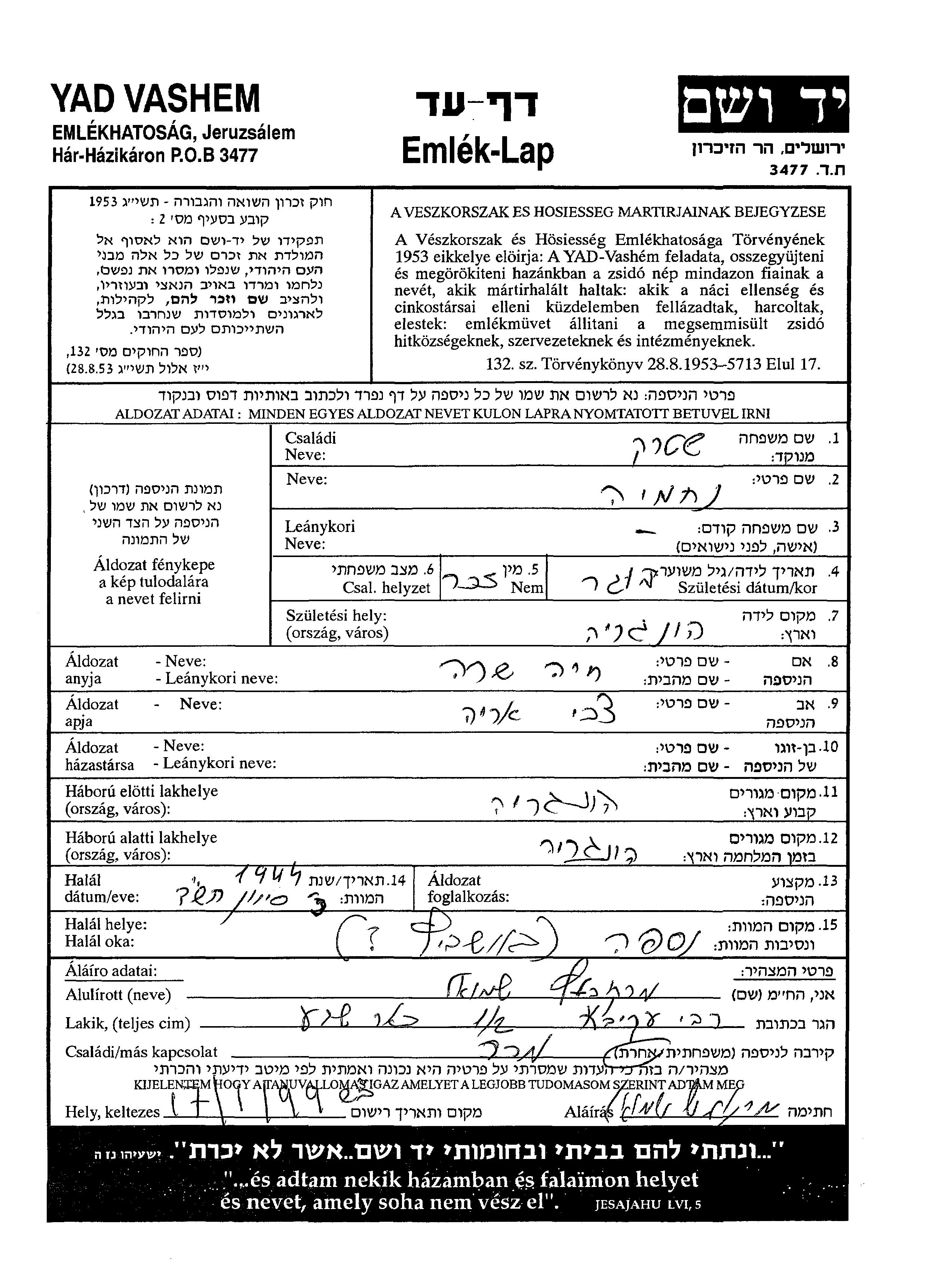Yad Vashem - Pages of Testimony Names Memorial Collection
