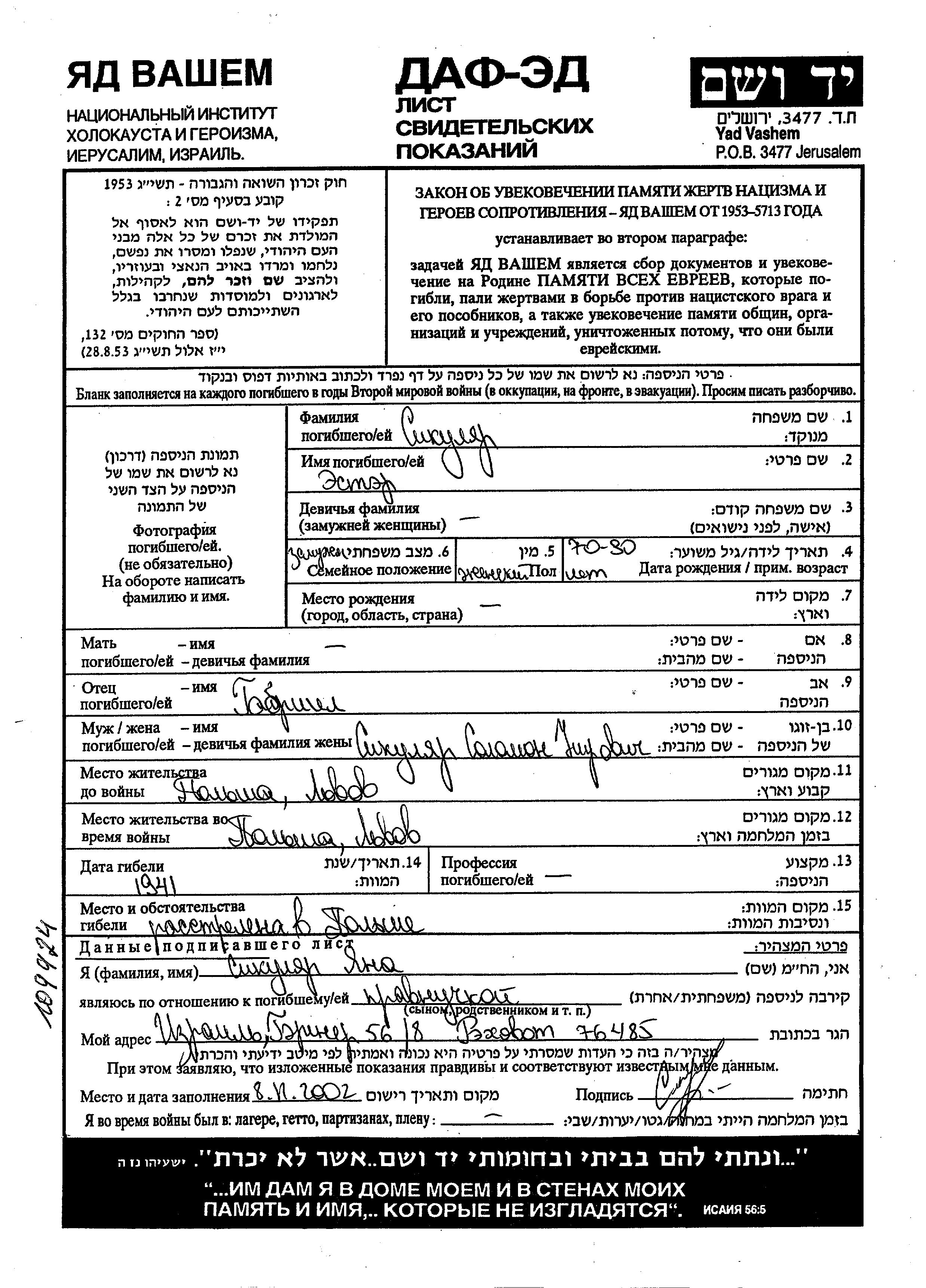 Yad Vashem - Pages of Testimony Names Memorial Collection