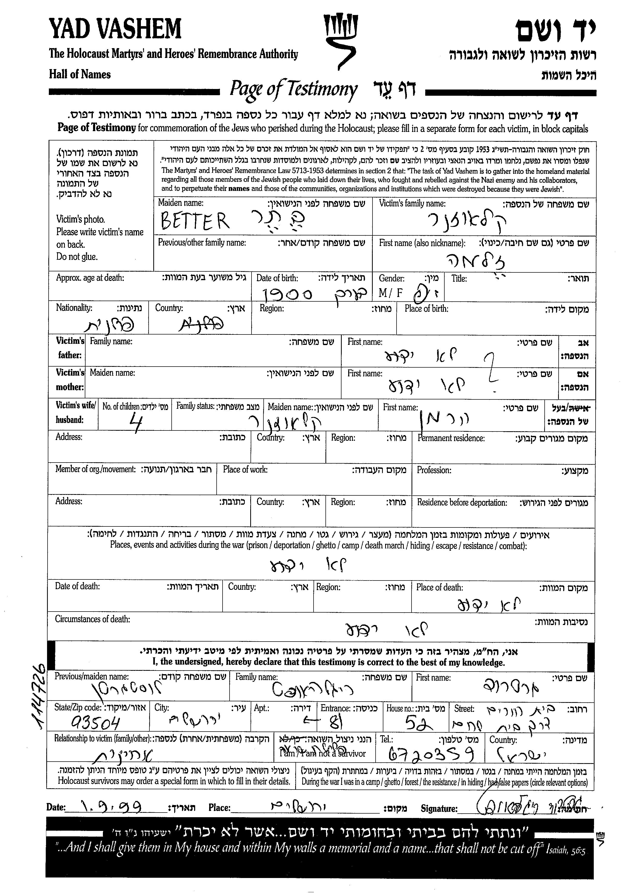 Yad Vashem - Pages of Testimony Names Memorial Collection