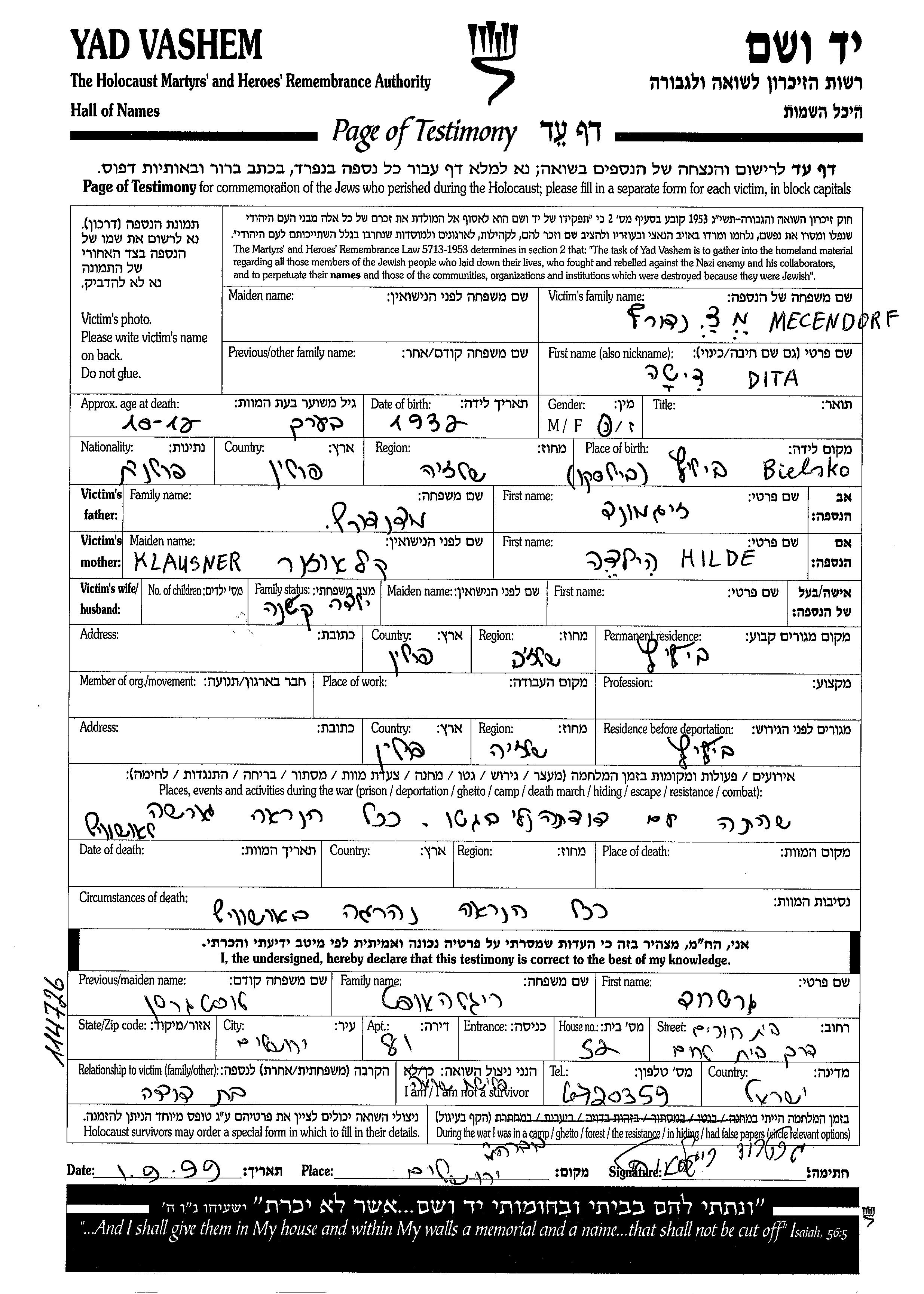 Yad Vashem - Pages of Testimony Names Memorial Collection