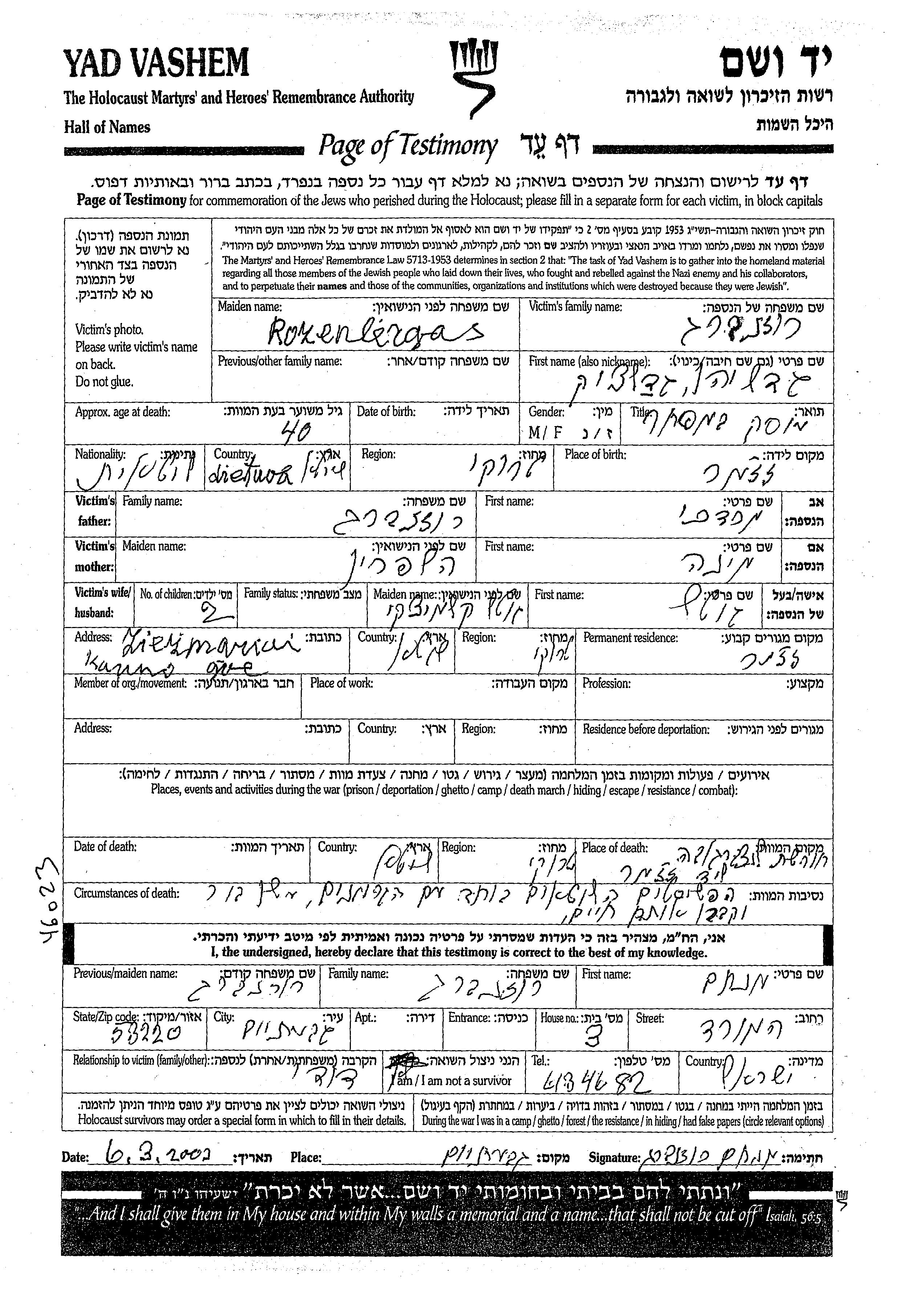 Yad Vashem - Pages of Testimony Names Memorial Collection