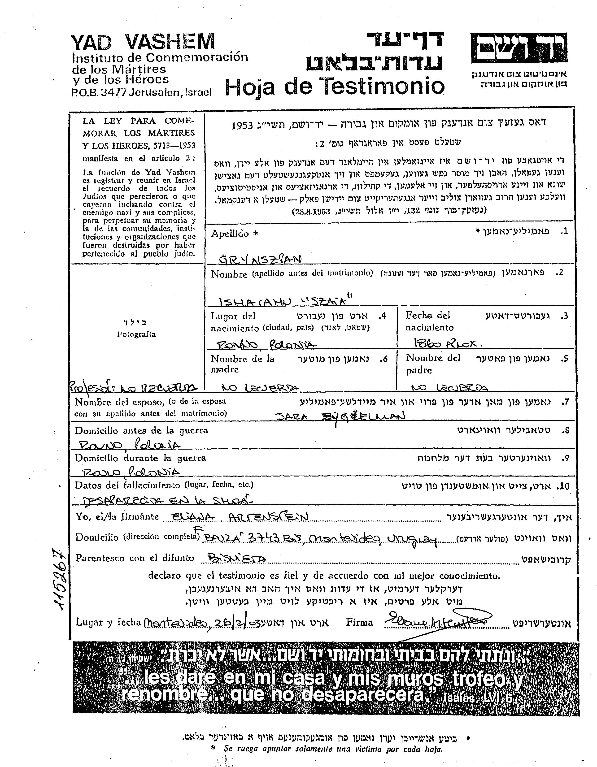 Yad Vashem - Pages of Testimony Names Memorial Collection