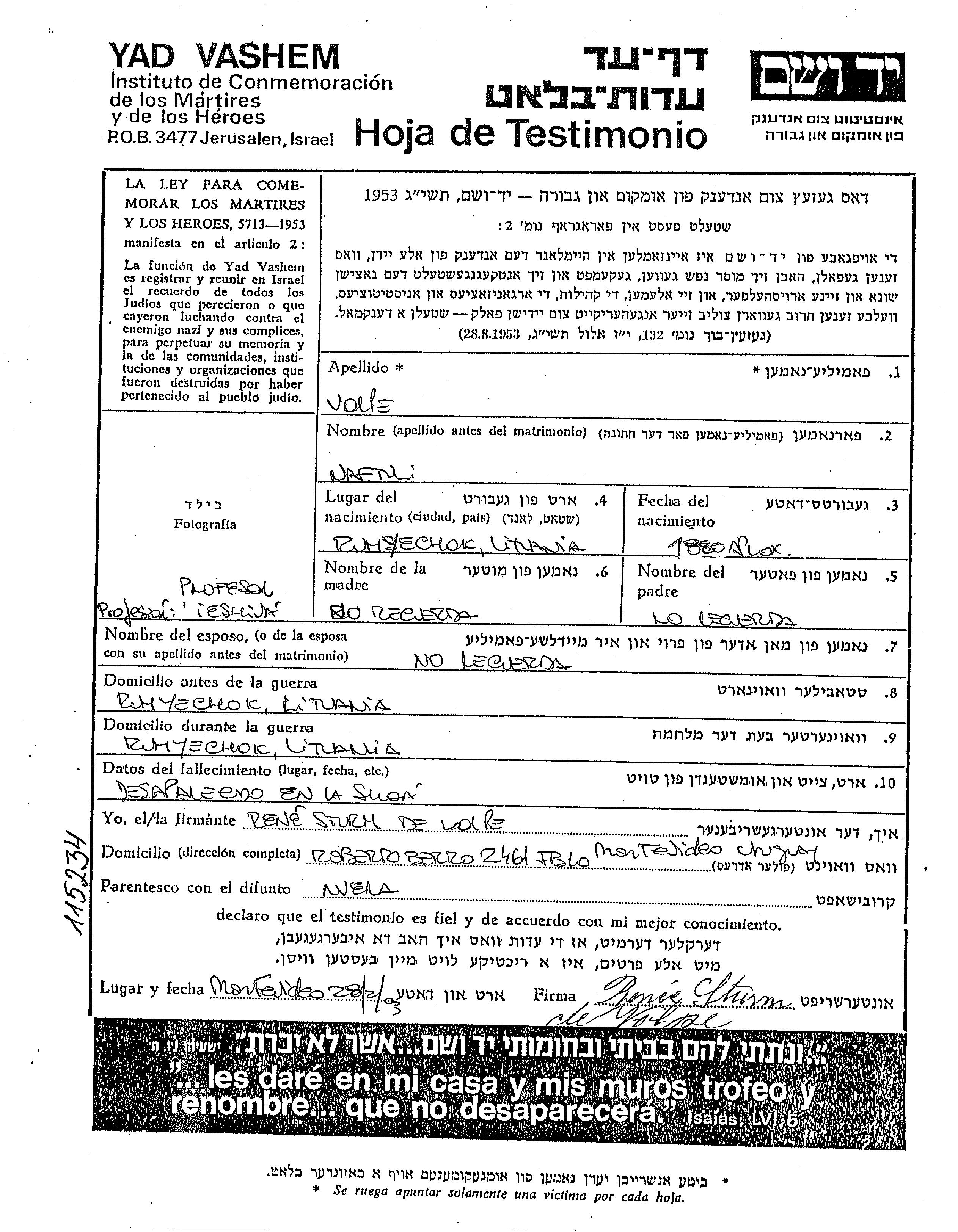 Yad Vashem - Pages of Testimony Names Memorial Collection
