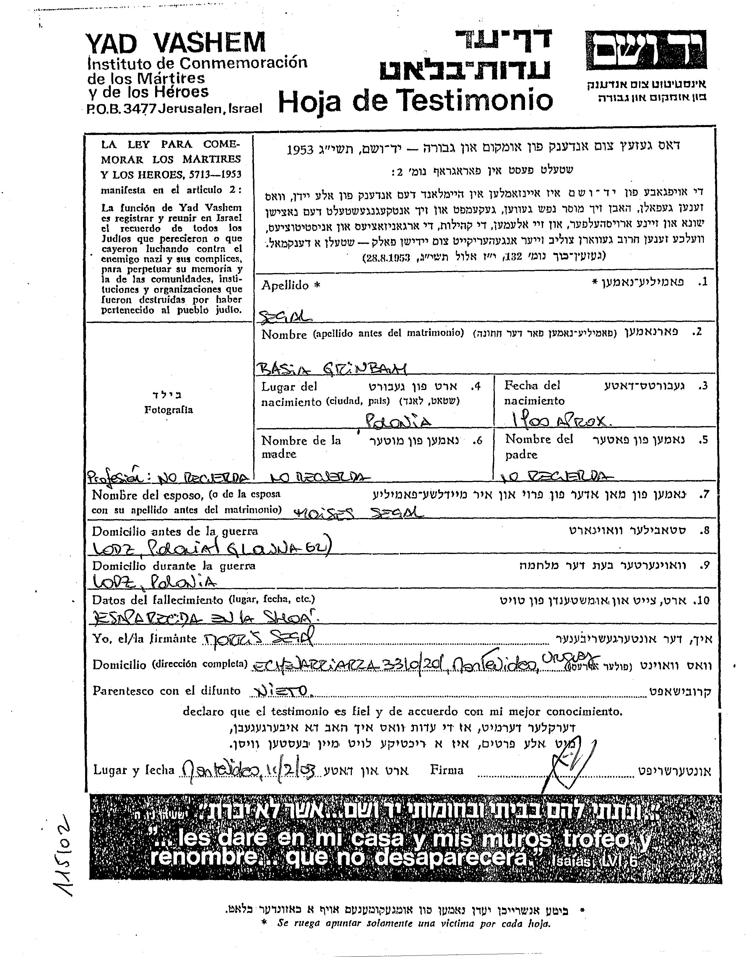 Yad Vashem - Pages of Testimony Names Memorial Collection
