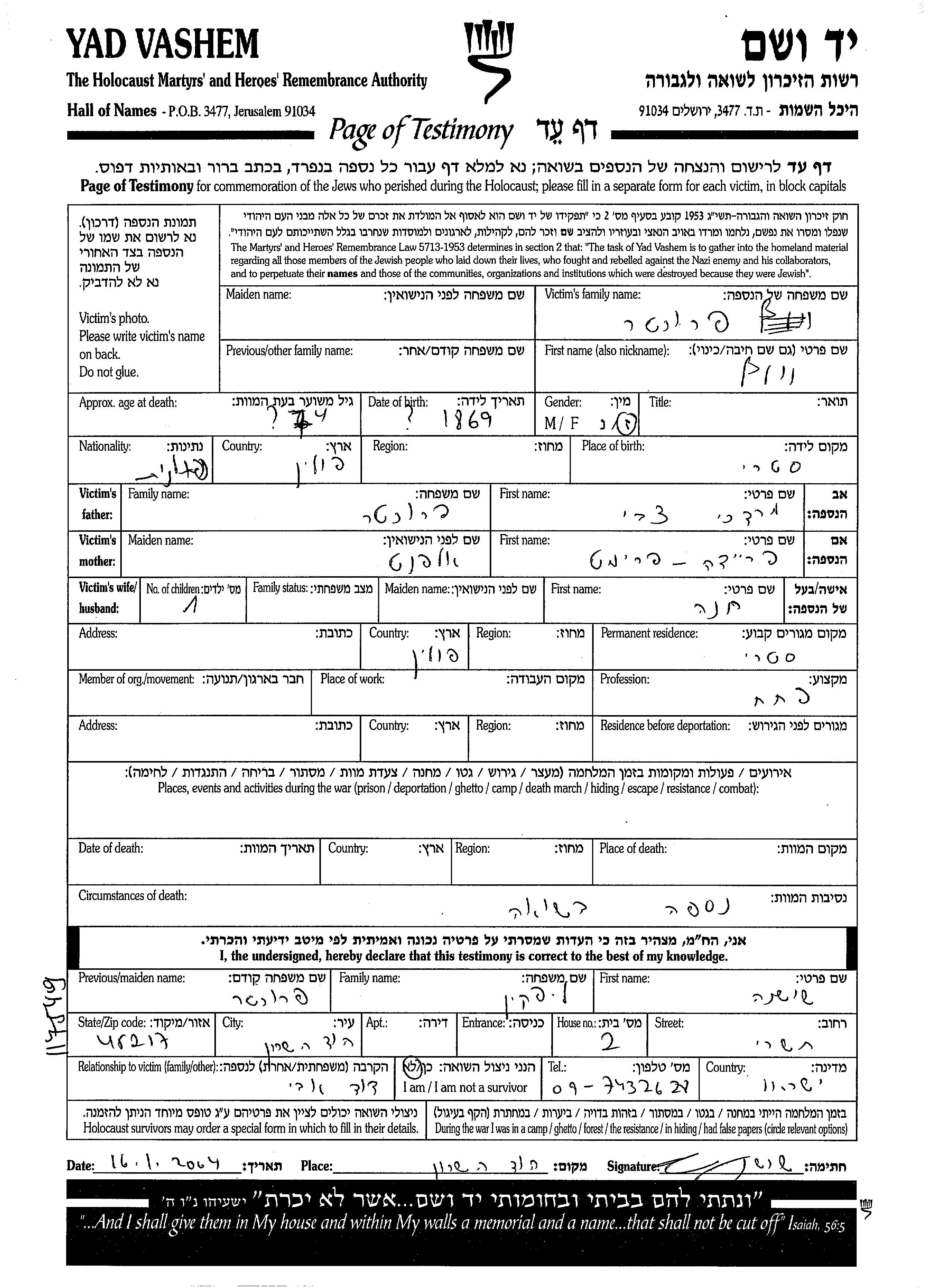 Yad Vashem - Pages of Testimony Names Memorial Collection