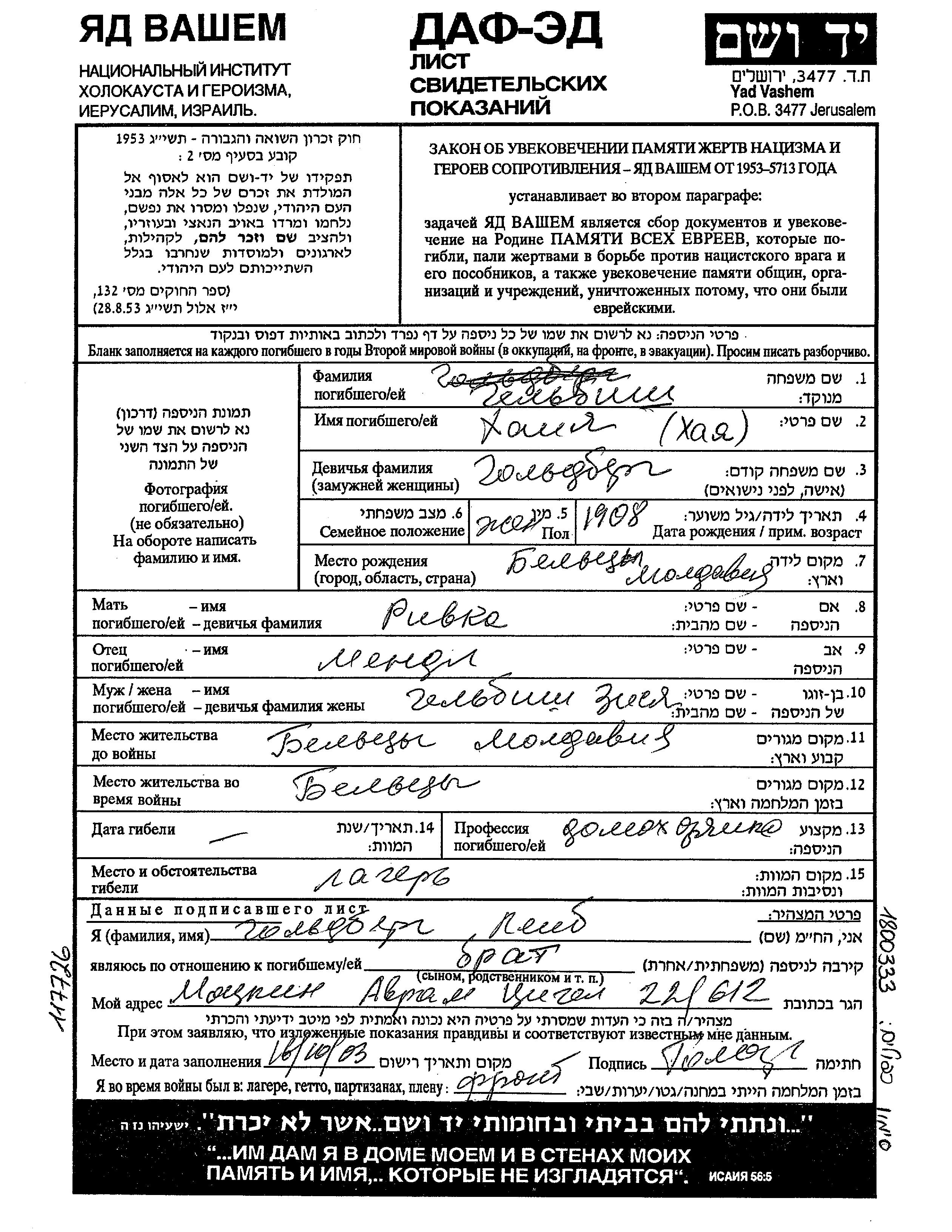 Yad Vashem - Pages of Testimony Names Memorial Collection