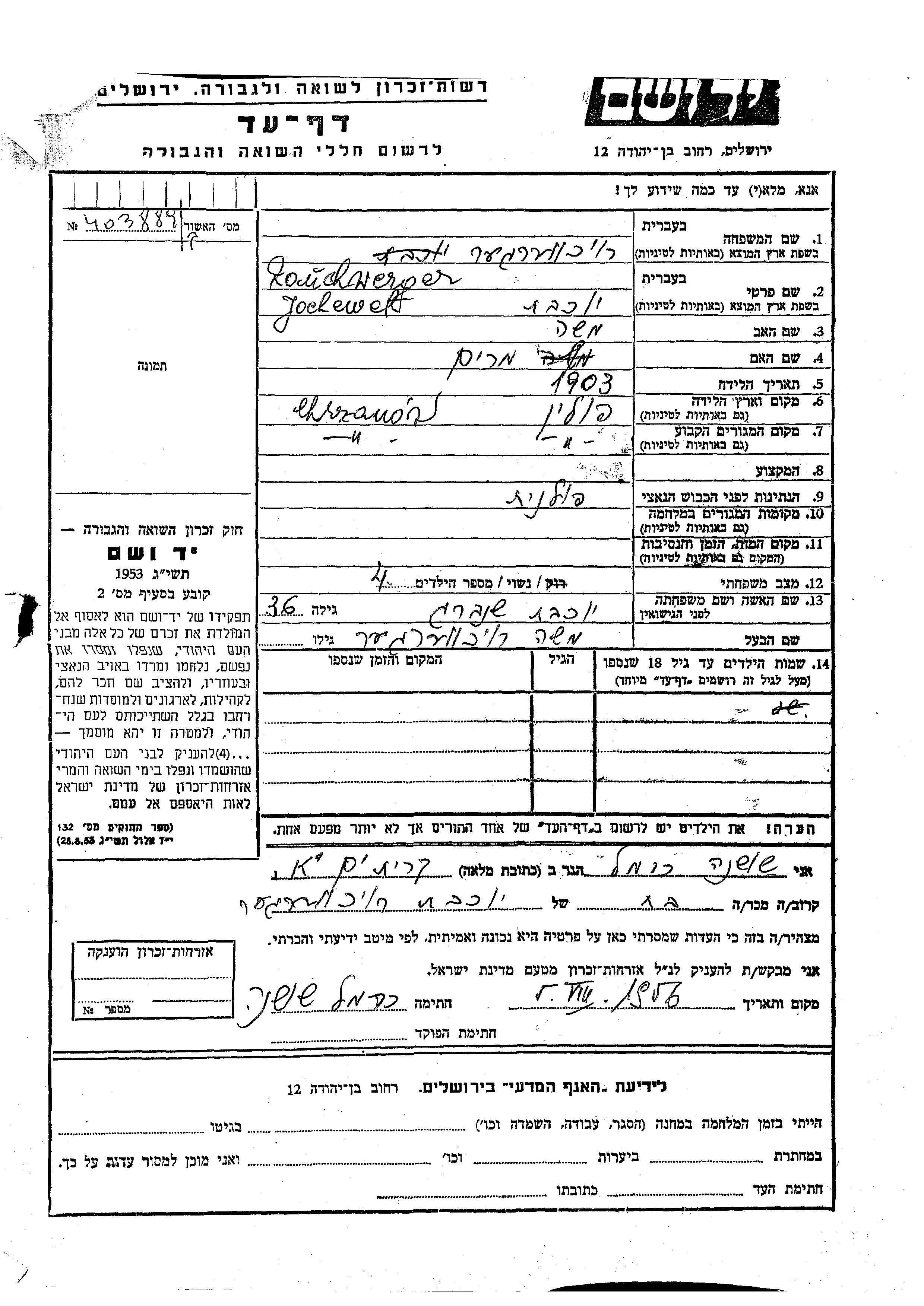 Yad Vashem - Pages of Testimony Names Memorial Collection