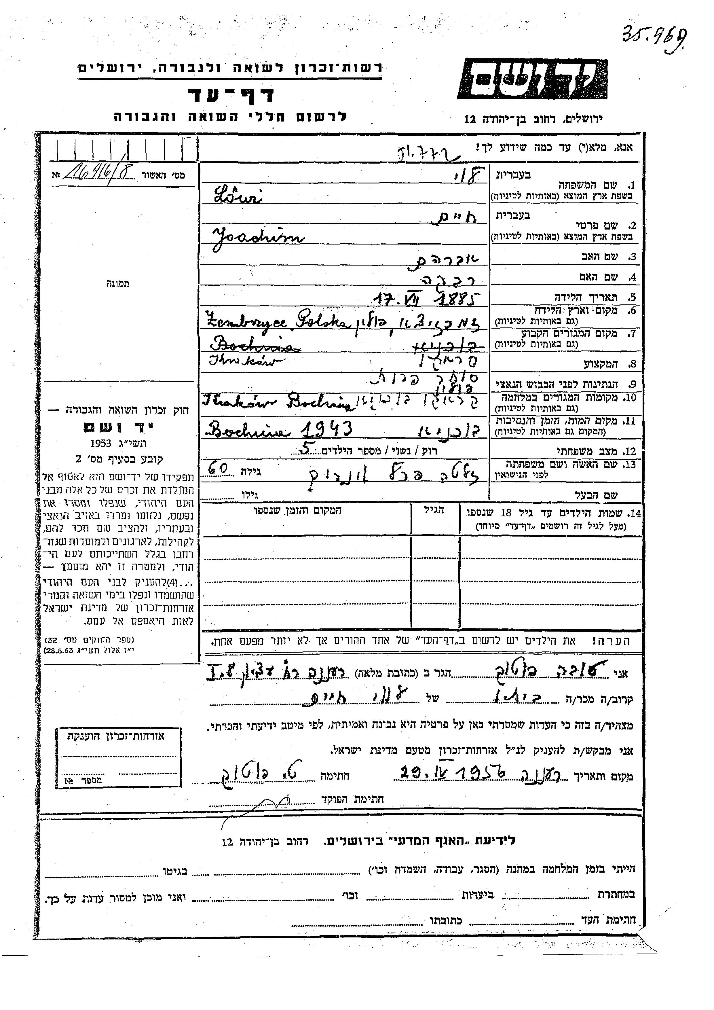 Yad Vashem - Pages of Testimony Names Memorial Collection