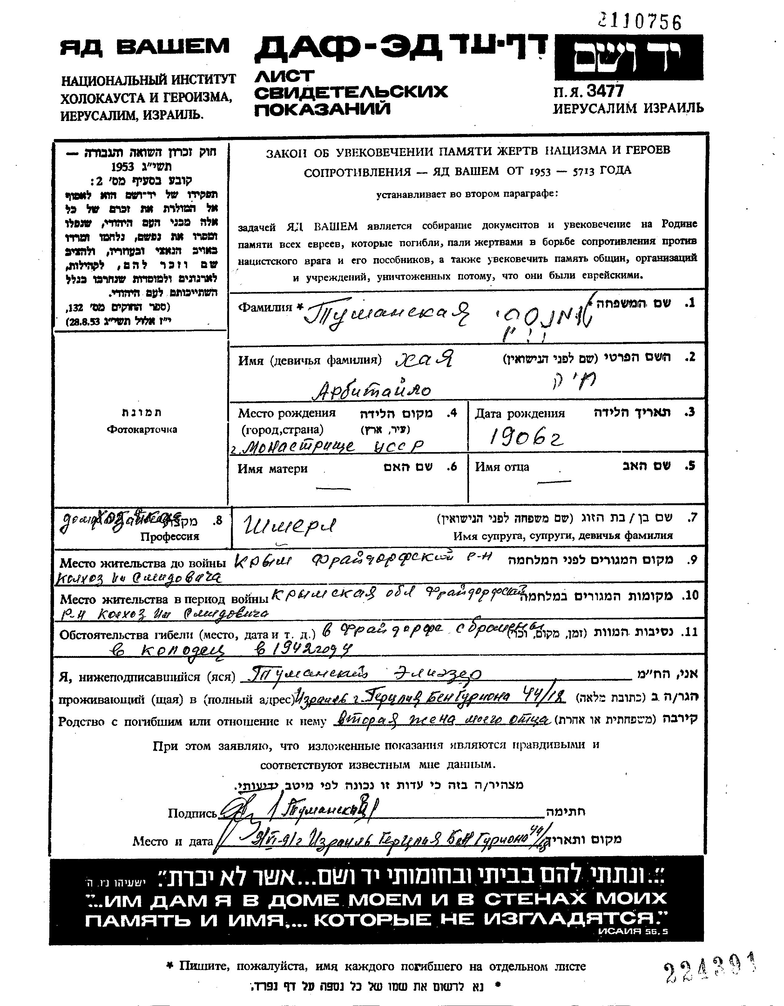 Yad Vashem - Pages of Testimony Names Memorial Collection