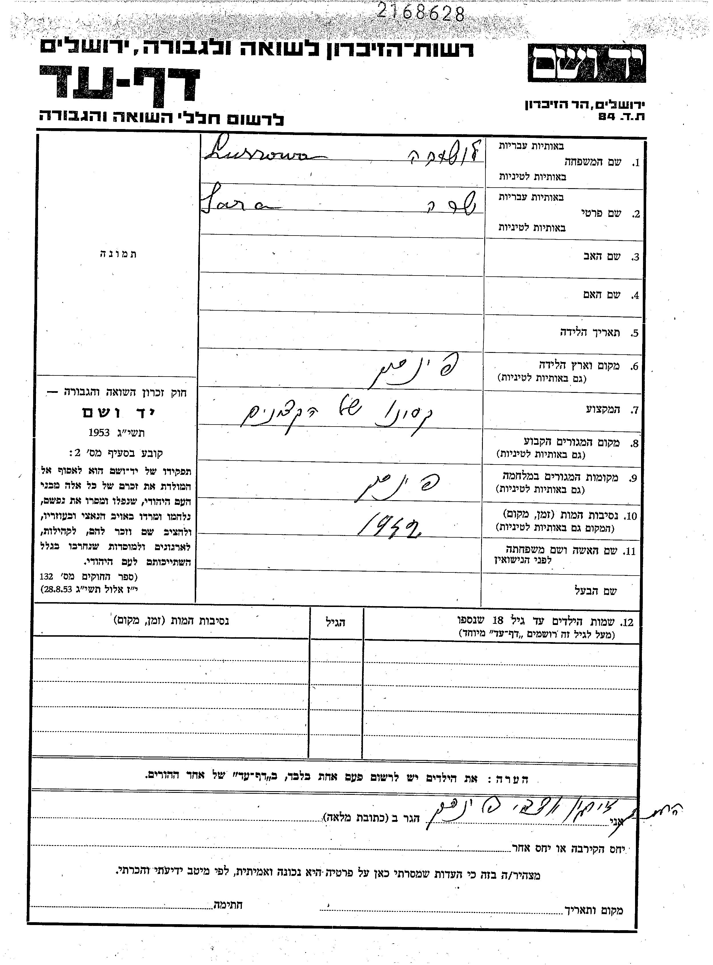Yad Vashem - Pages of Testimony Names Memorial Collection