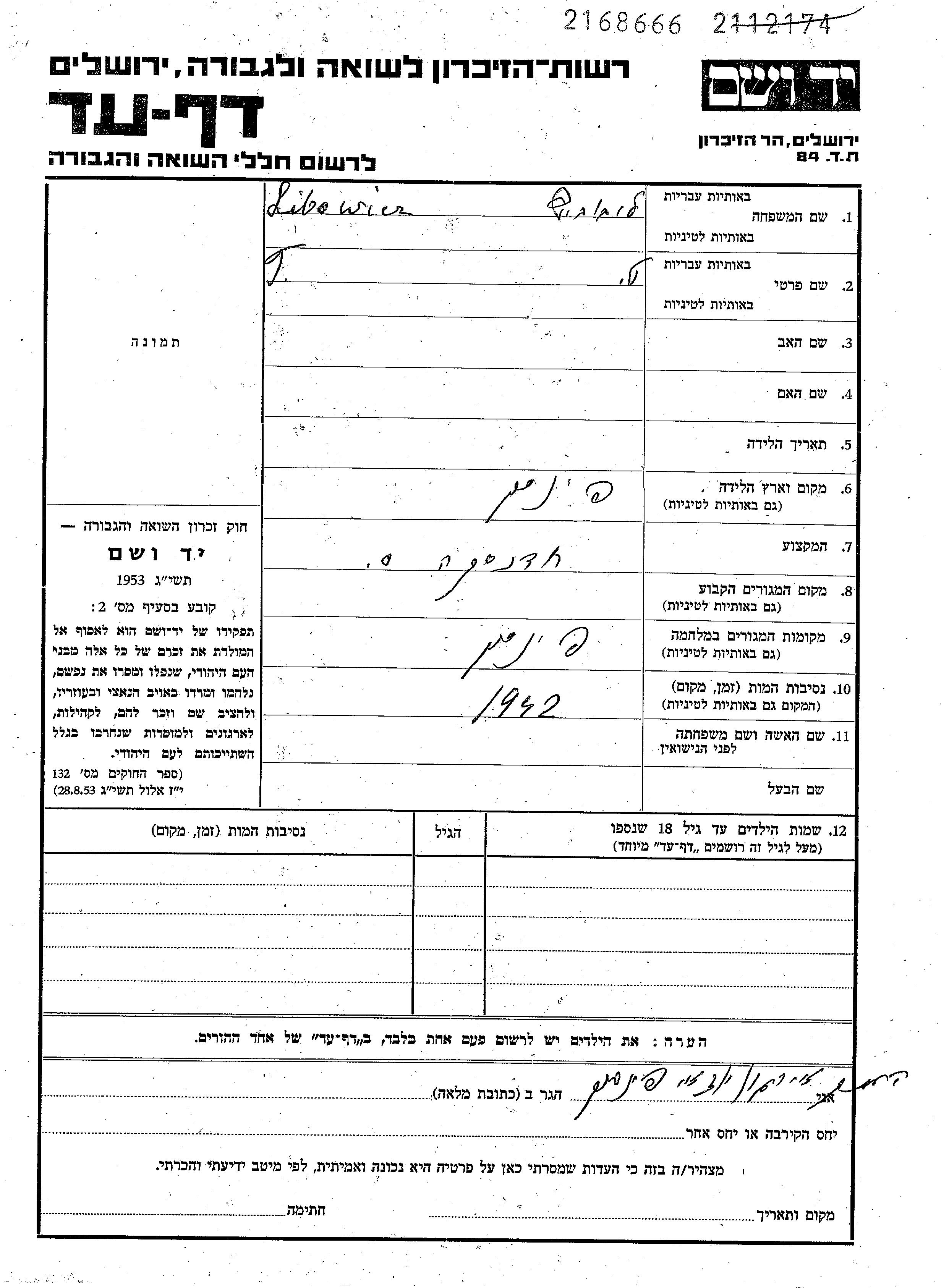 Yad Vashem - Pages of Testimony Names Memorial Collection