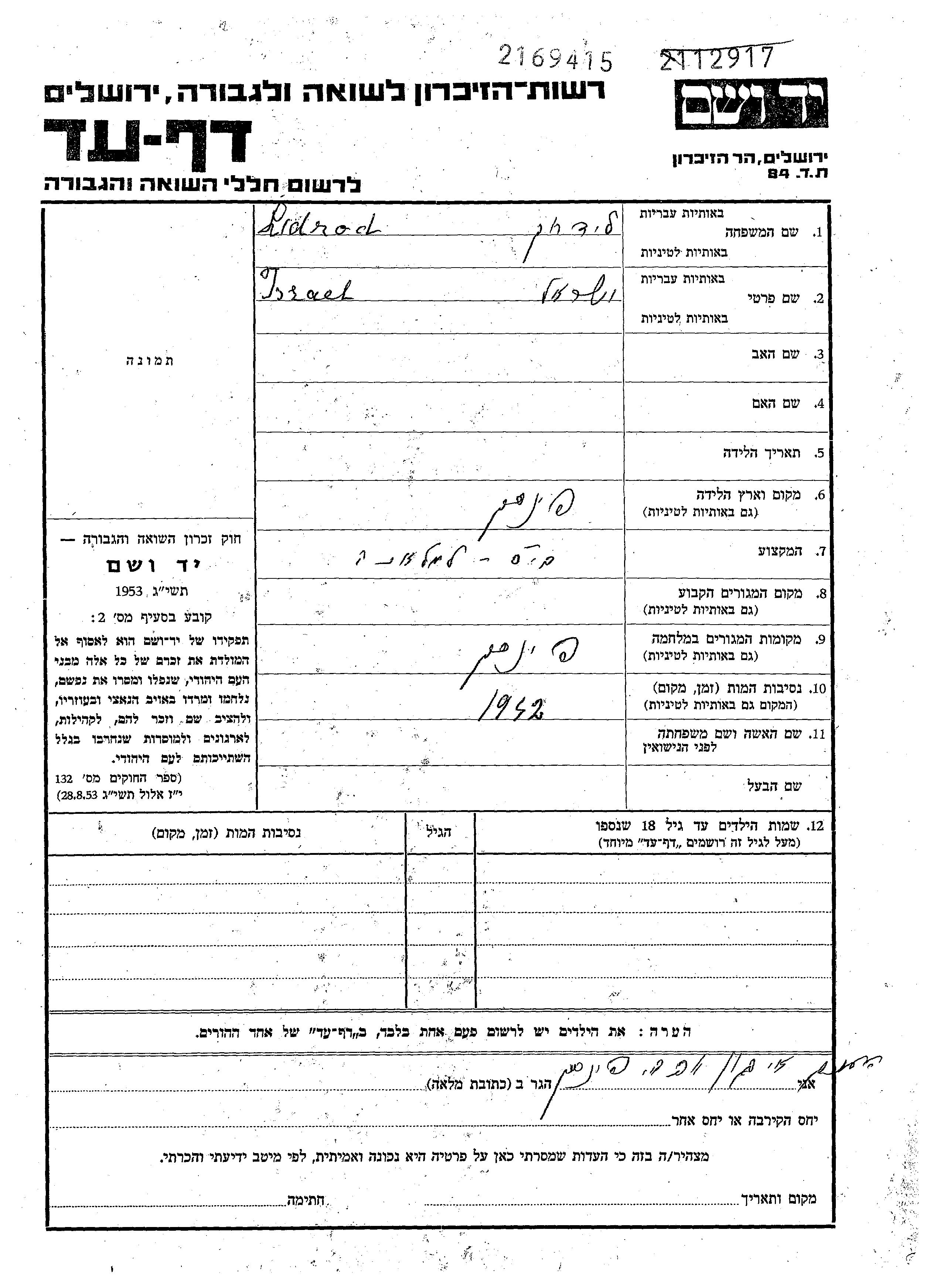 Yad Vashem - Pages of Testimony Names Memorial Collection