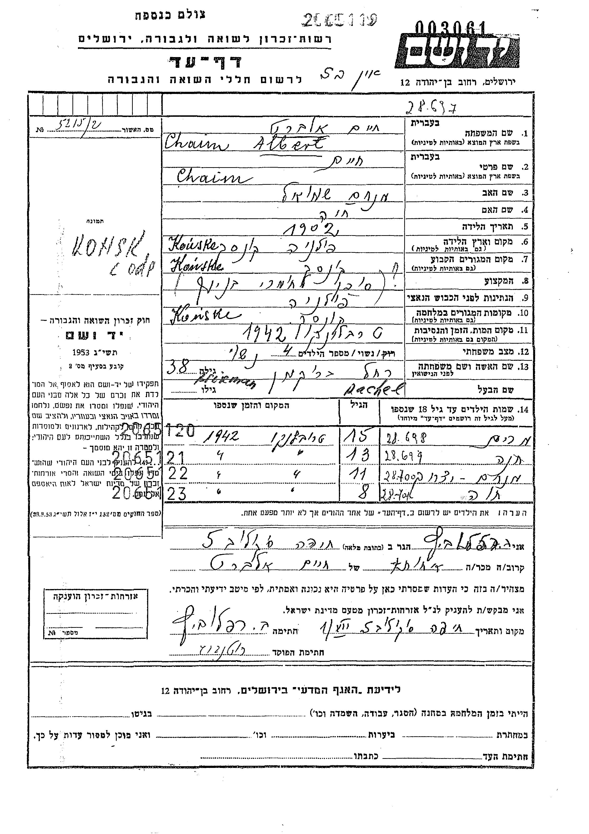 Yad Vashem - Pages of Testimony Names Memorial Collection