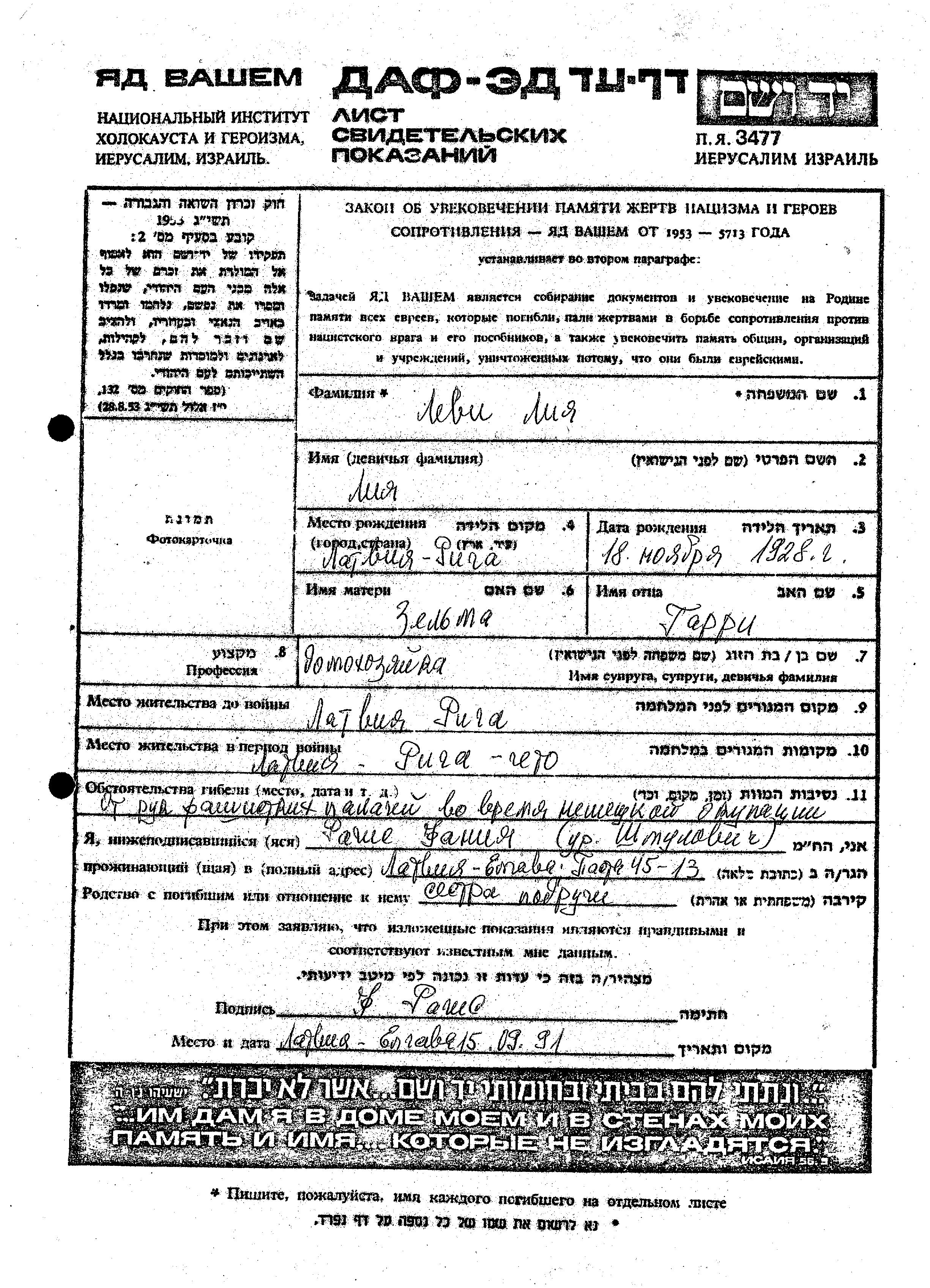 Yad Vashem - Pages of Testimony Names Memorial Collection