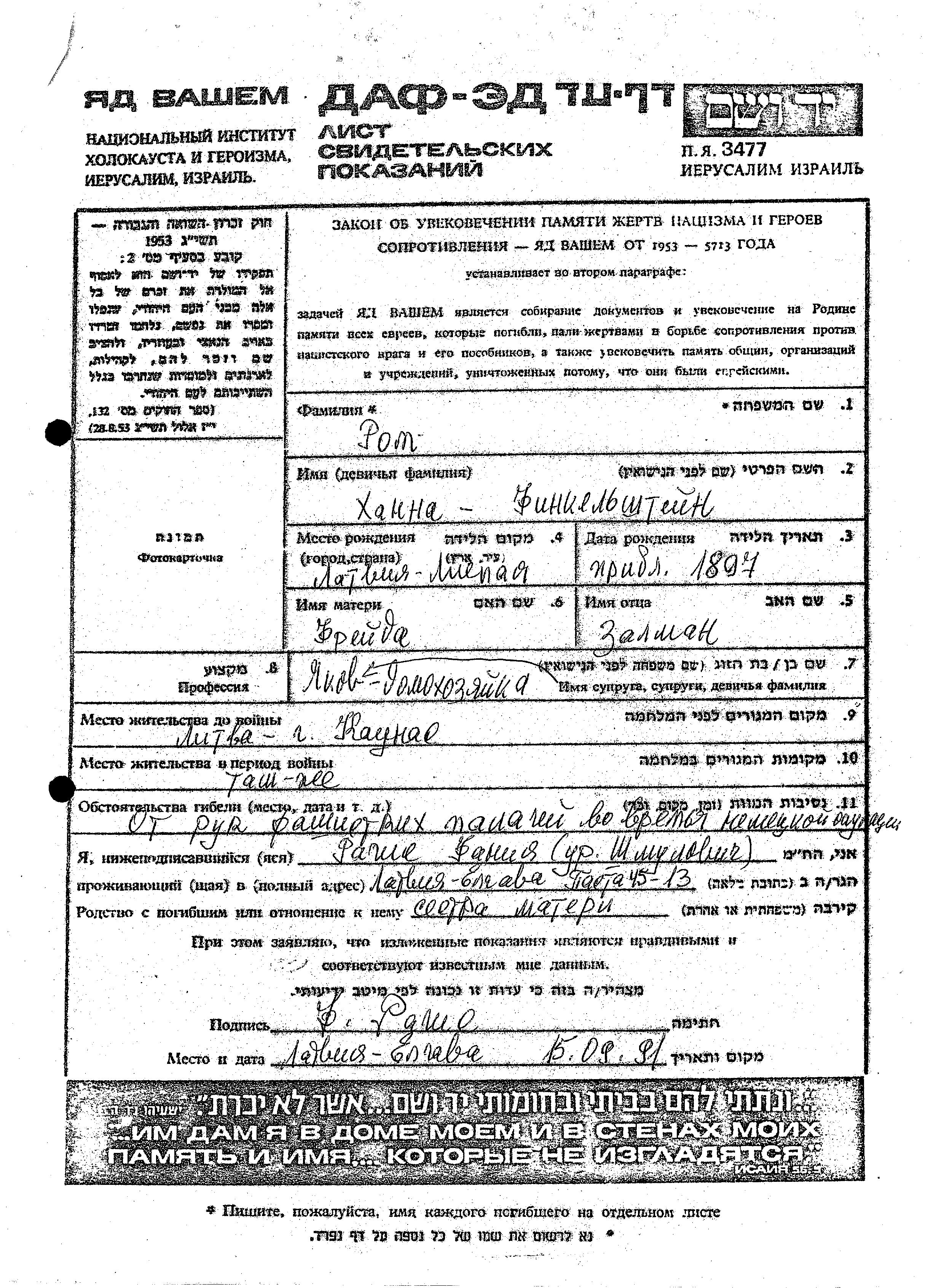 Yad Vashem - Pages of Testimony Names Memorial Collection
