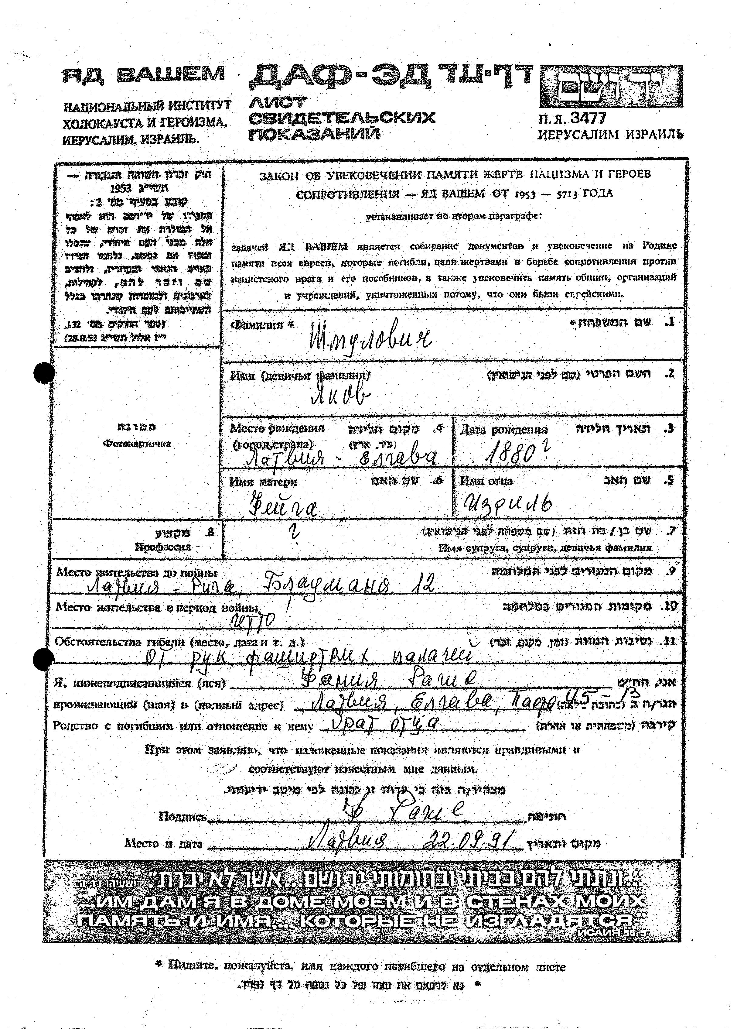 Yad Vashem - Pages of Testimony Names Memorial Collection