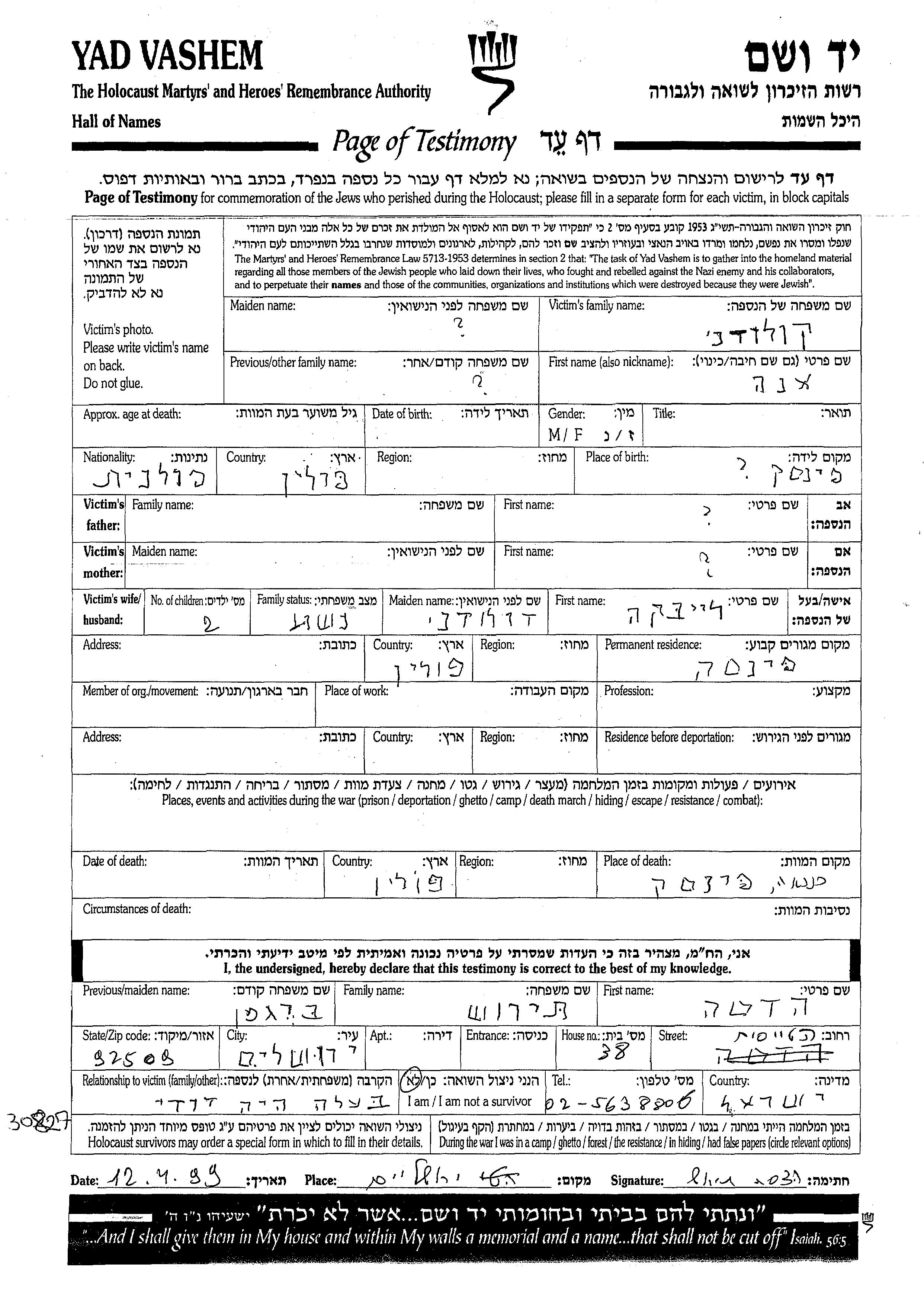 Yad Vashem - Pages of Testimony Names Memorial Collection