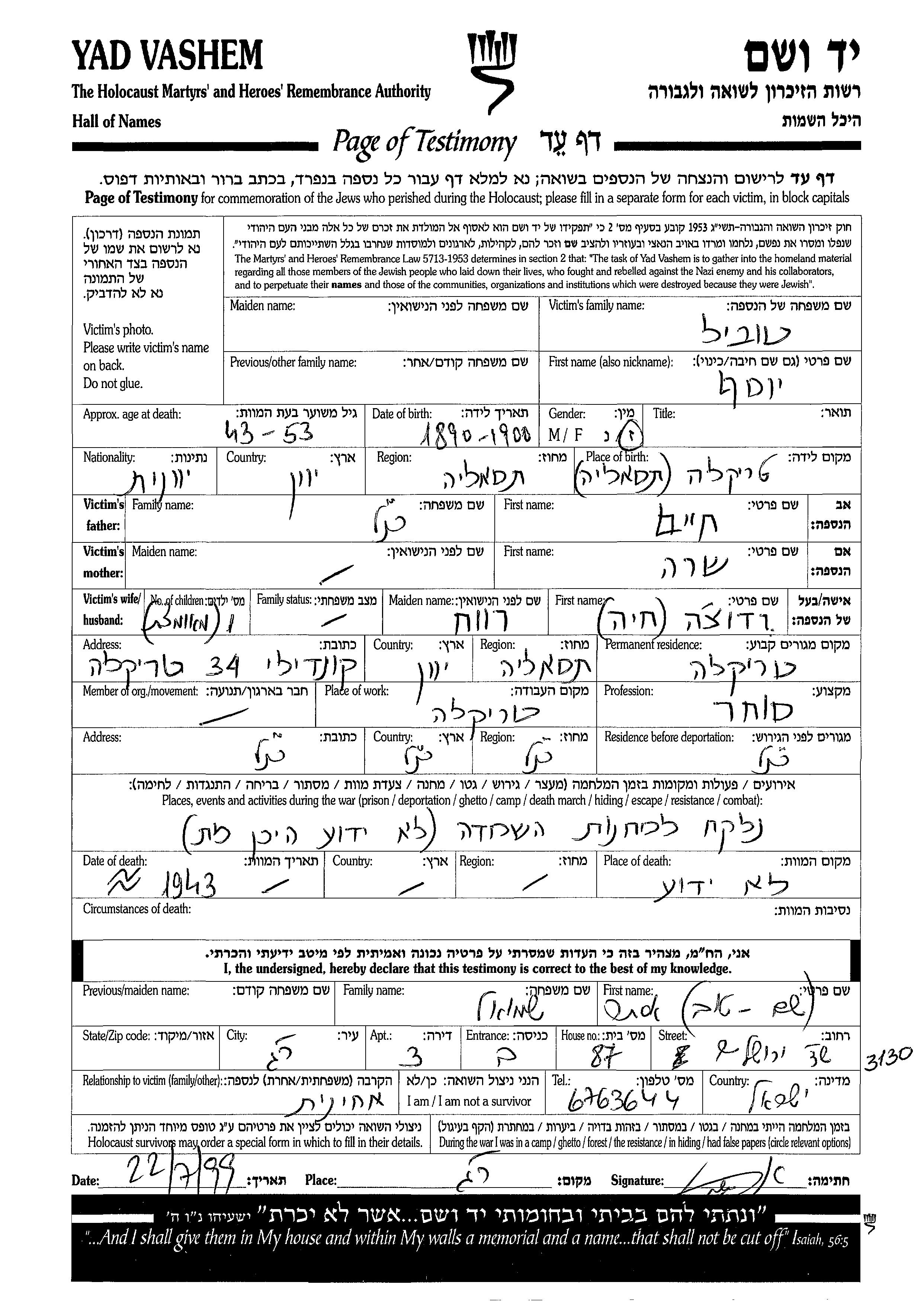 Recherche par date de la mort pendant la période de la Shoah: 1933-1945. Sélectionnez 'Exact'; dans la liste pour rechercher l'année exacte, ou sélectionner '+/- 2 ans'; ou '+/- 5 ans