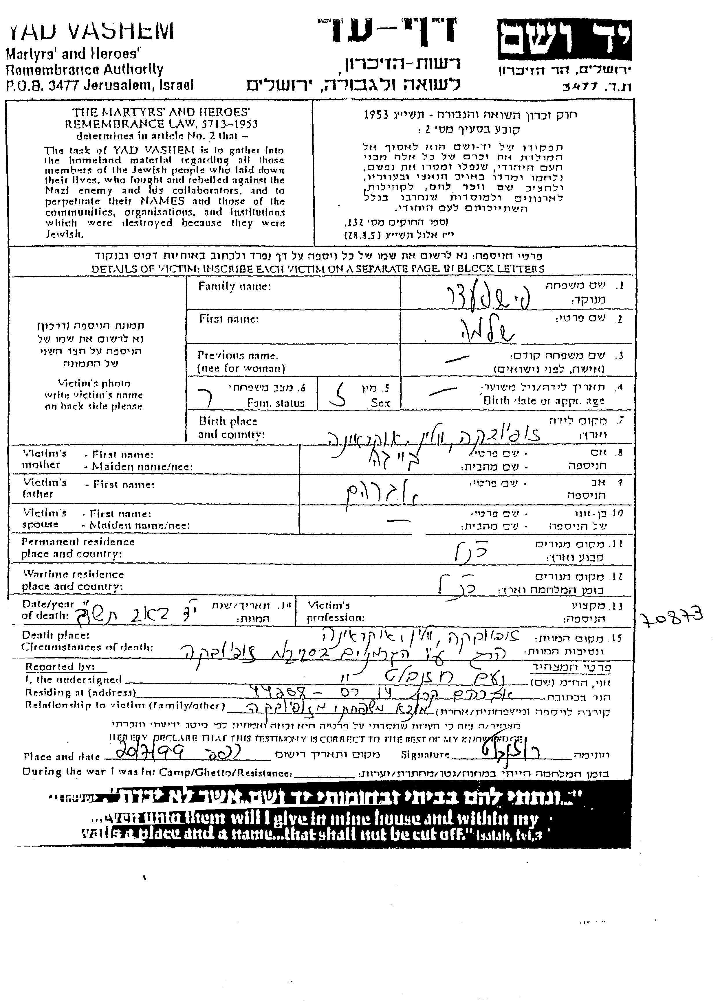 Yad Vashem - Pages of Testimony Names Memorial Collection
