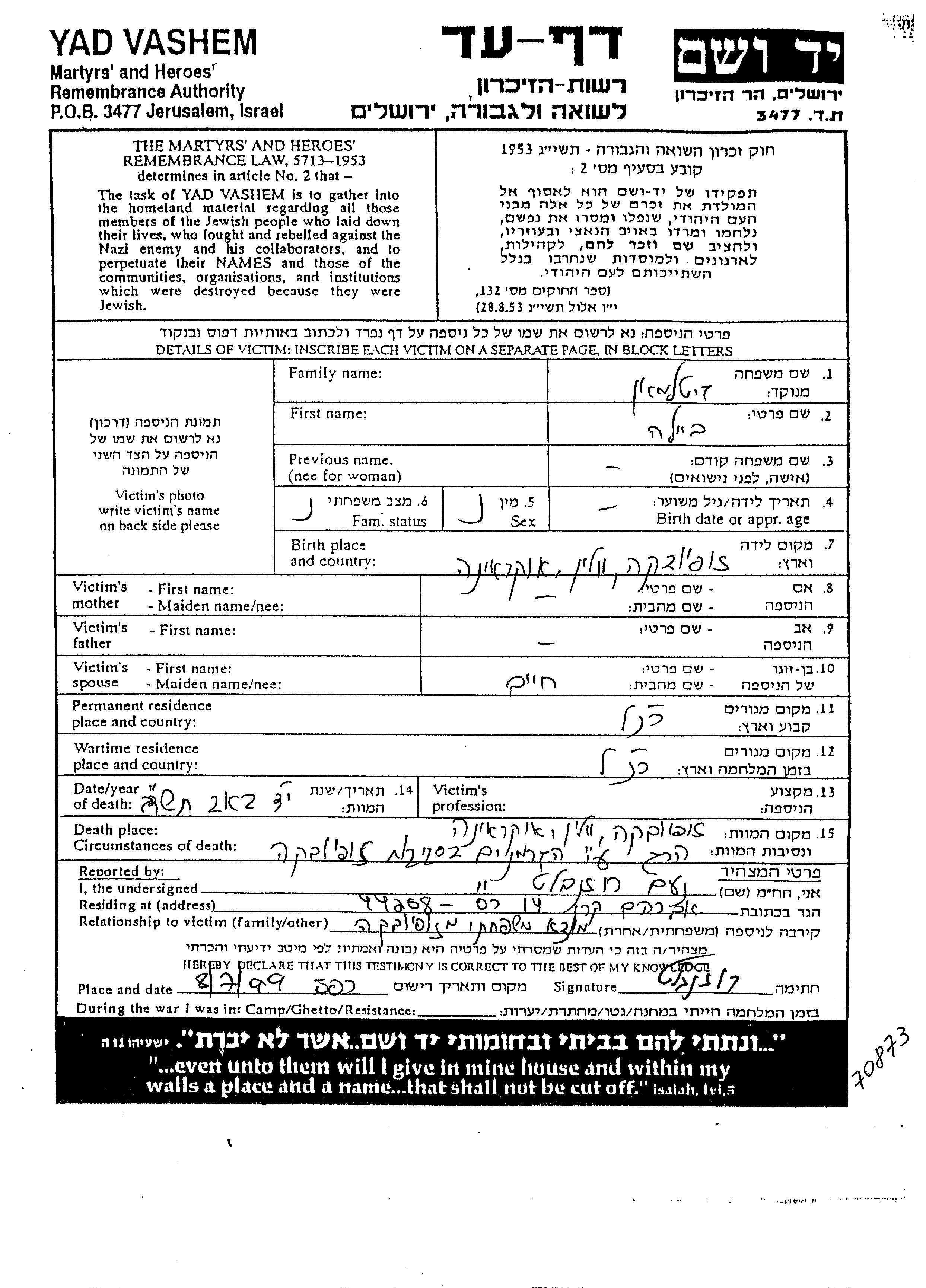 Yad Vashem - Pages of Testimony Names Memorial Collection