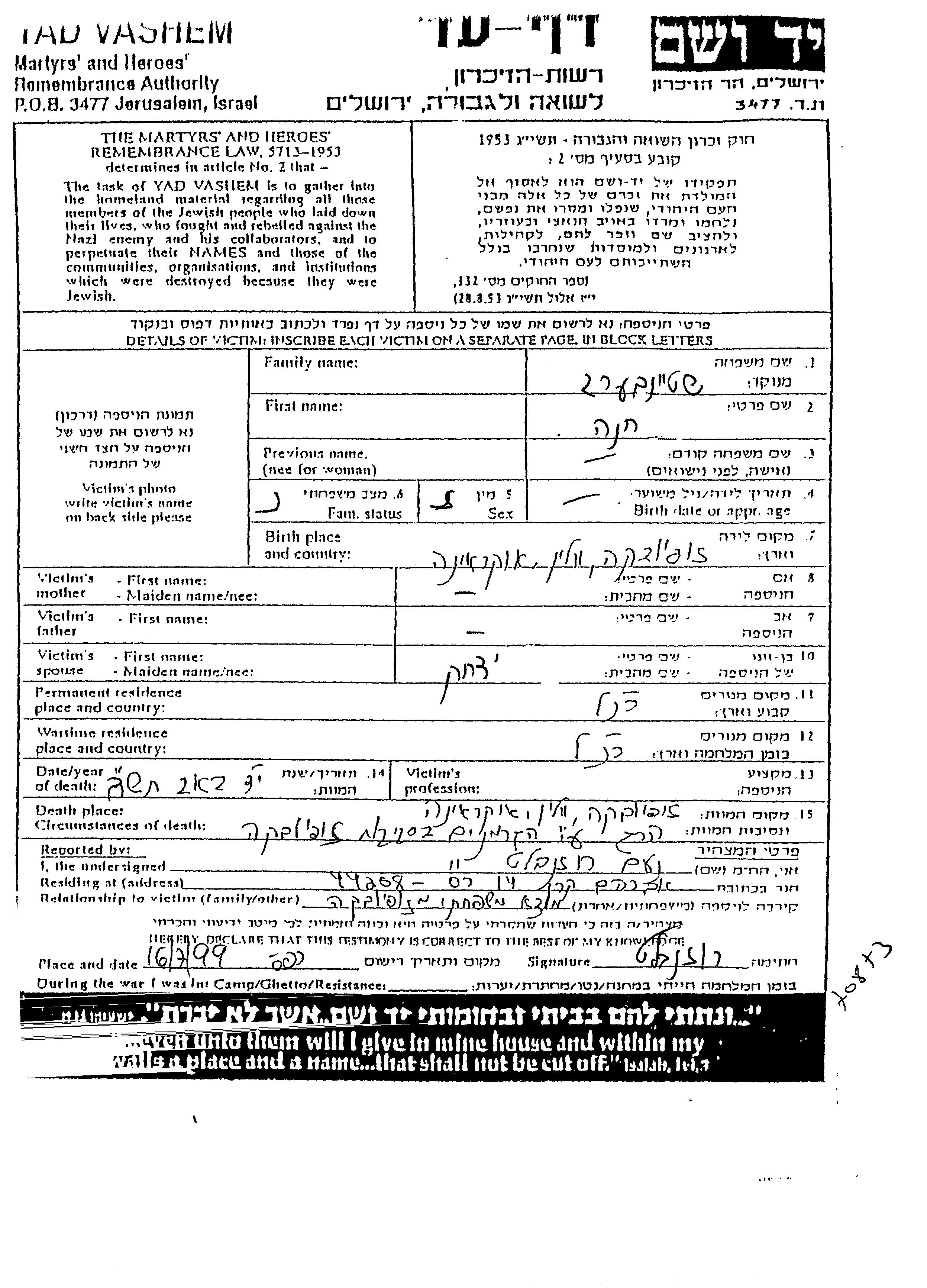 Yad Vashem - Pages of Testimony Names Memorial Collection