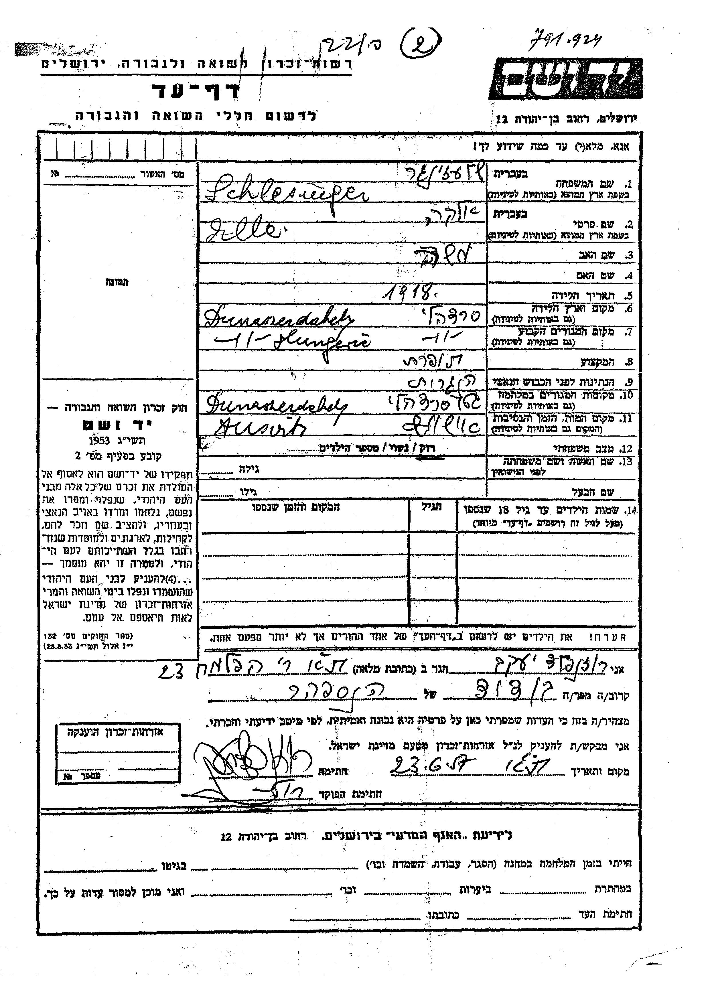 Yad Vashem - Pages of Testimony Names Memorial Collection
