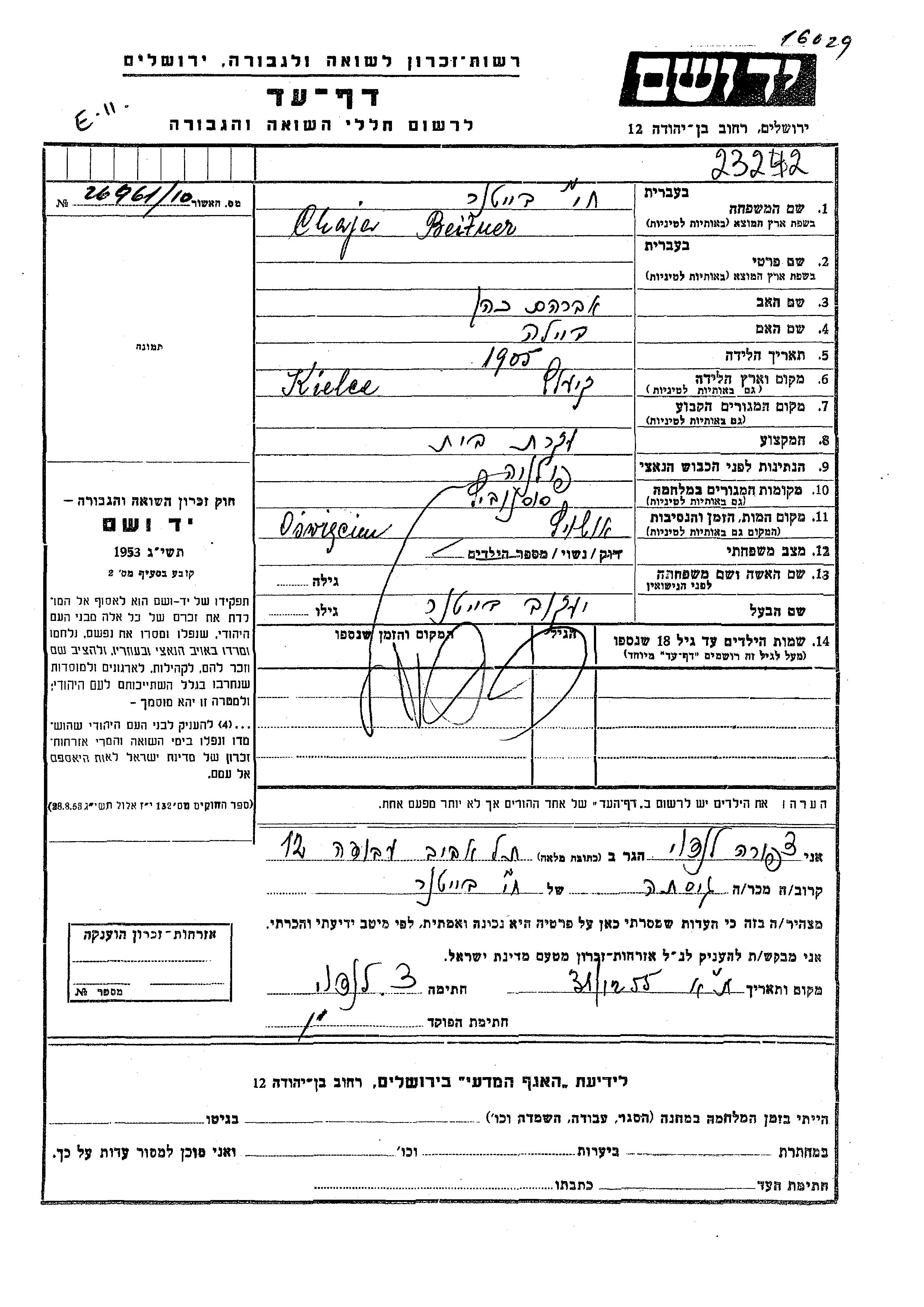 Yad Vashem - Pages of Testimony Names Memorial Collection