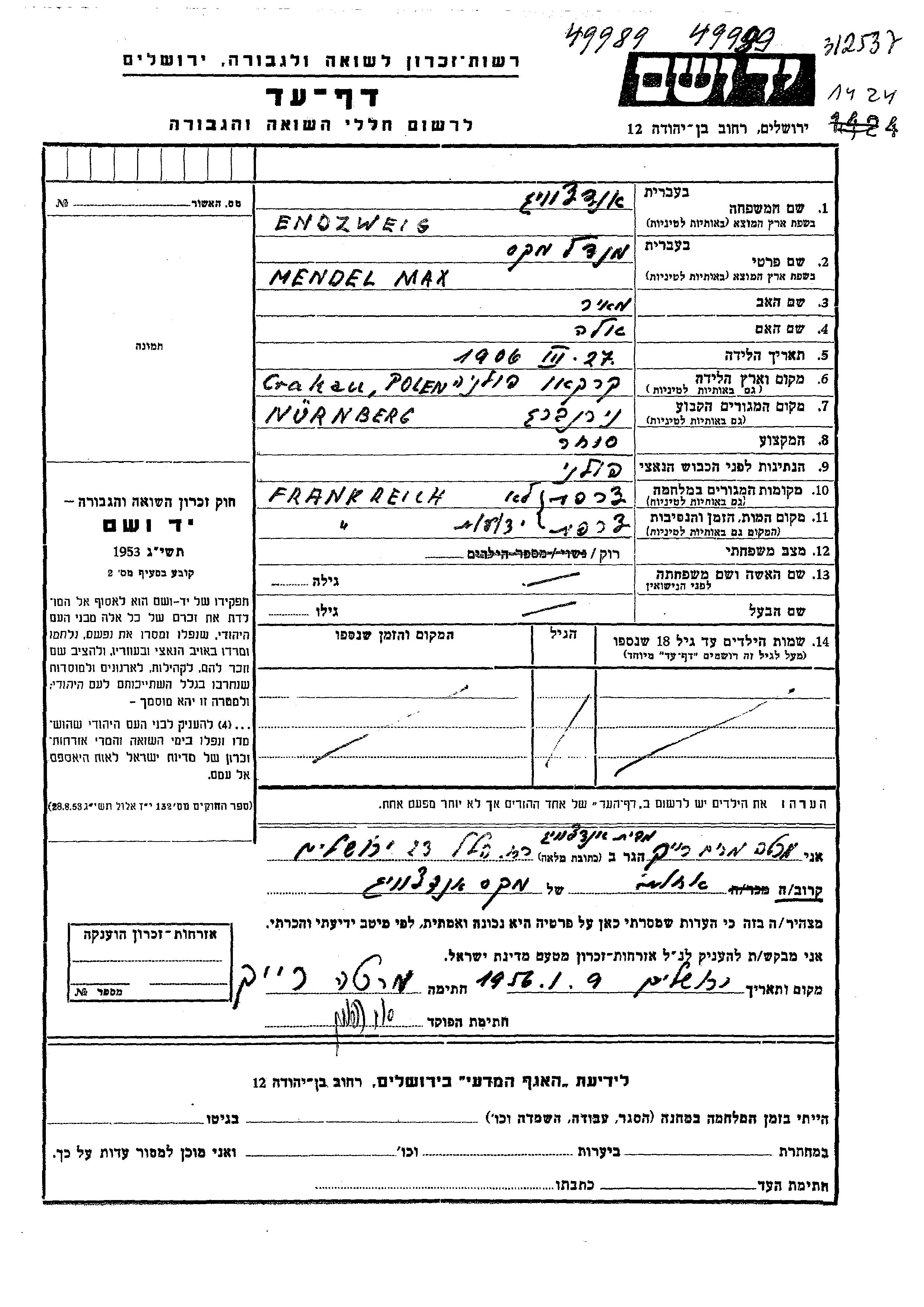 Yad Vashem - Pages of Testimony Names Memorial Collection