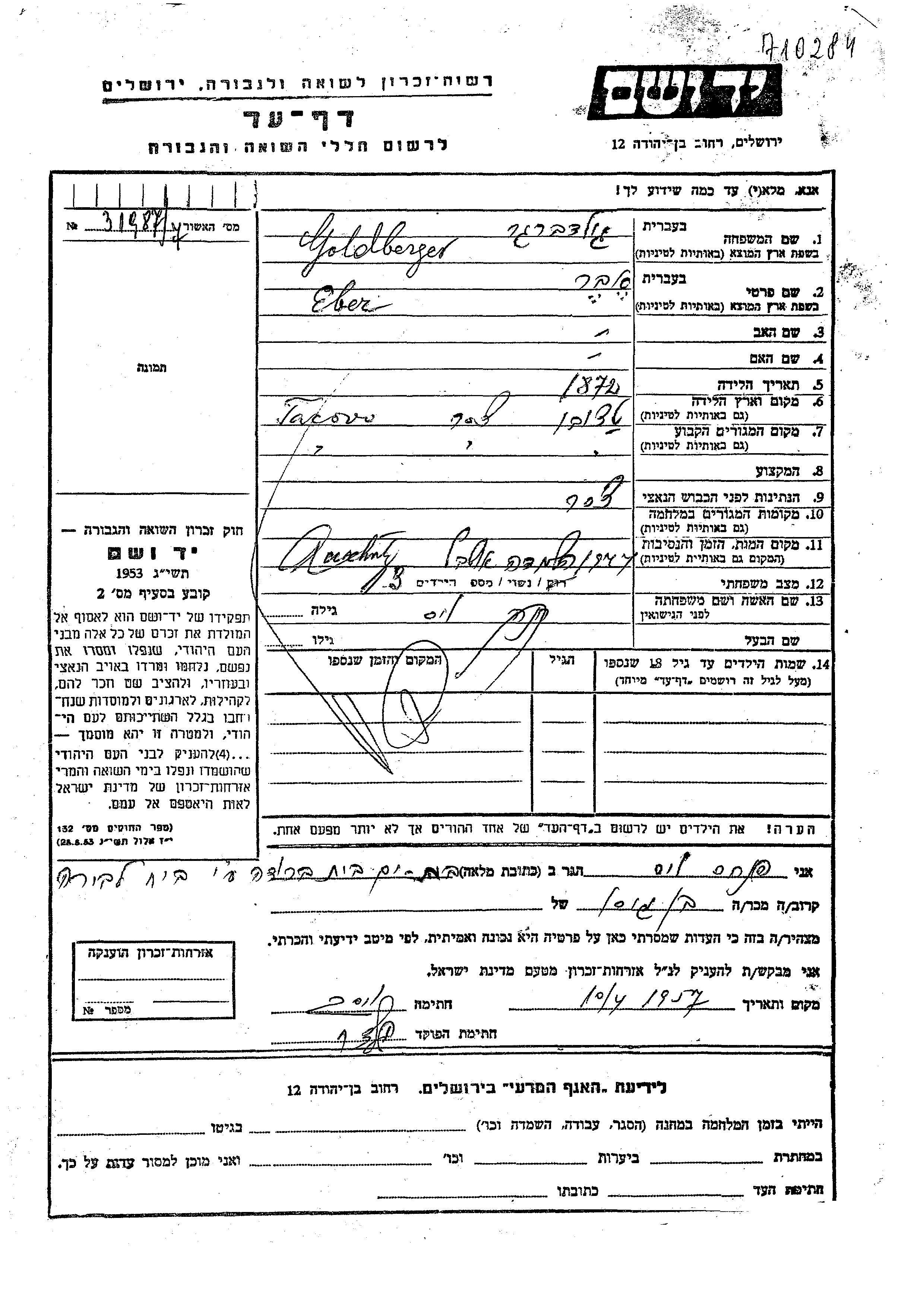 Eber a été assassiné pendant la Shoah. Lieu de la mort: Oświęcim, Pologne en 1944.