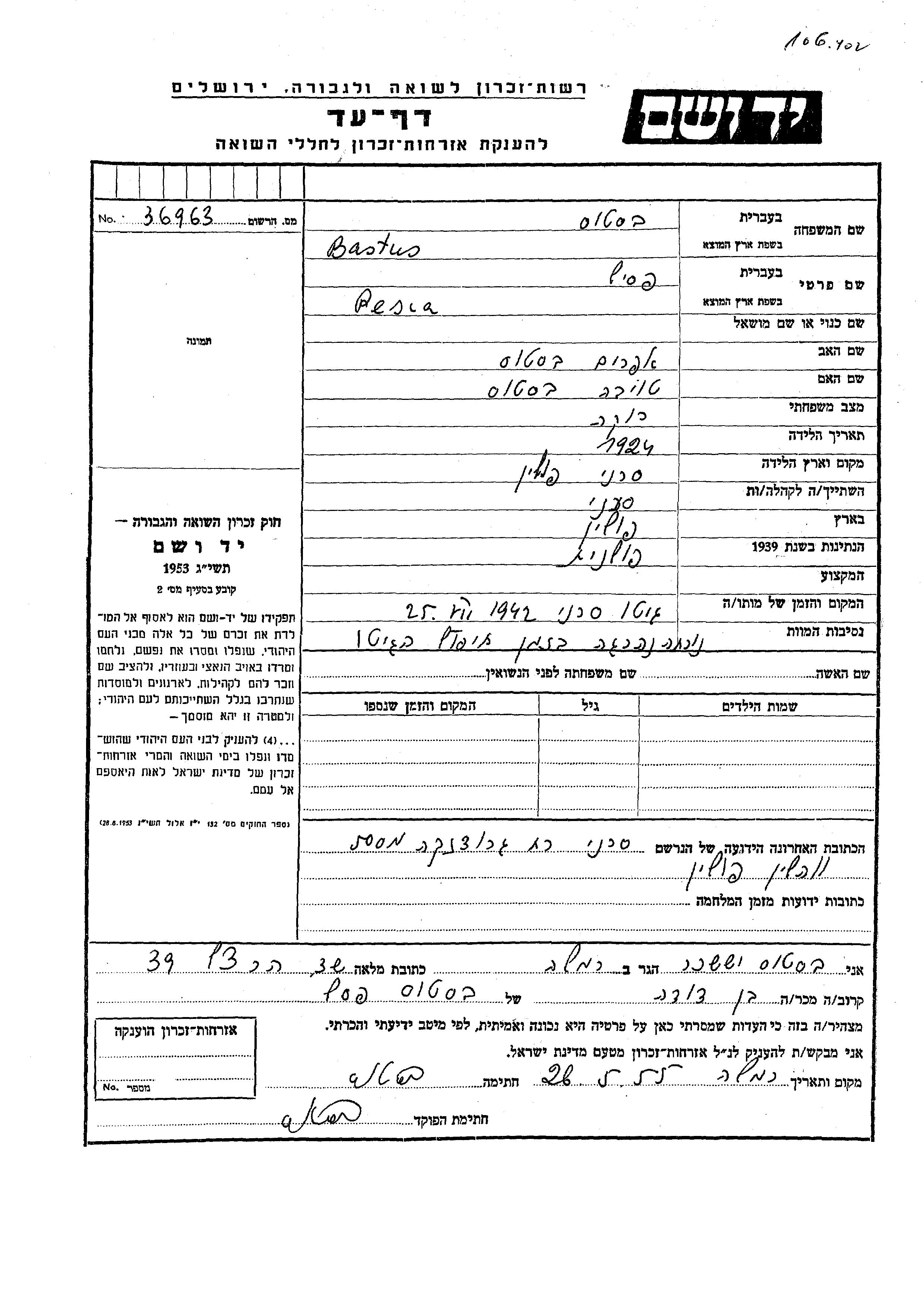 Yad Vashem - Pages of Testimony Names Memorial Collection