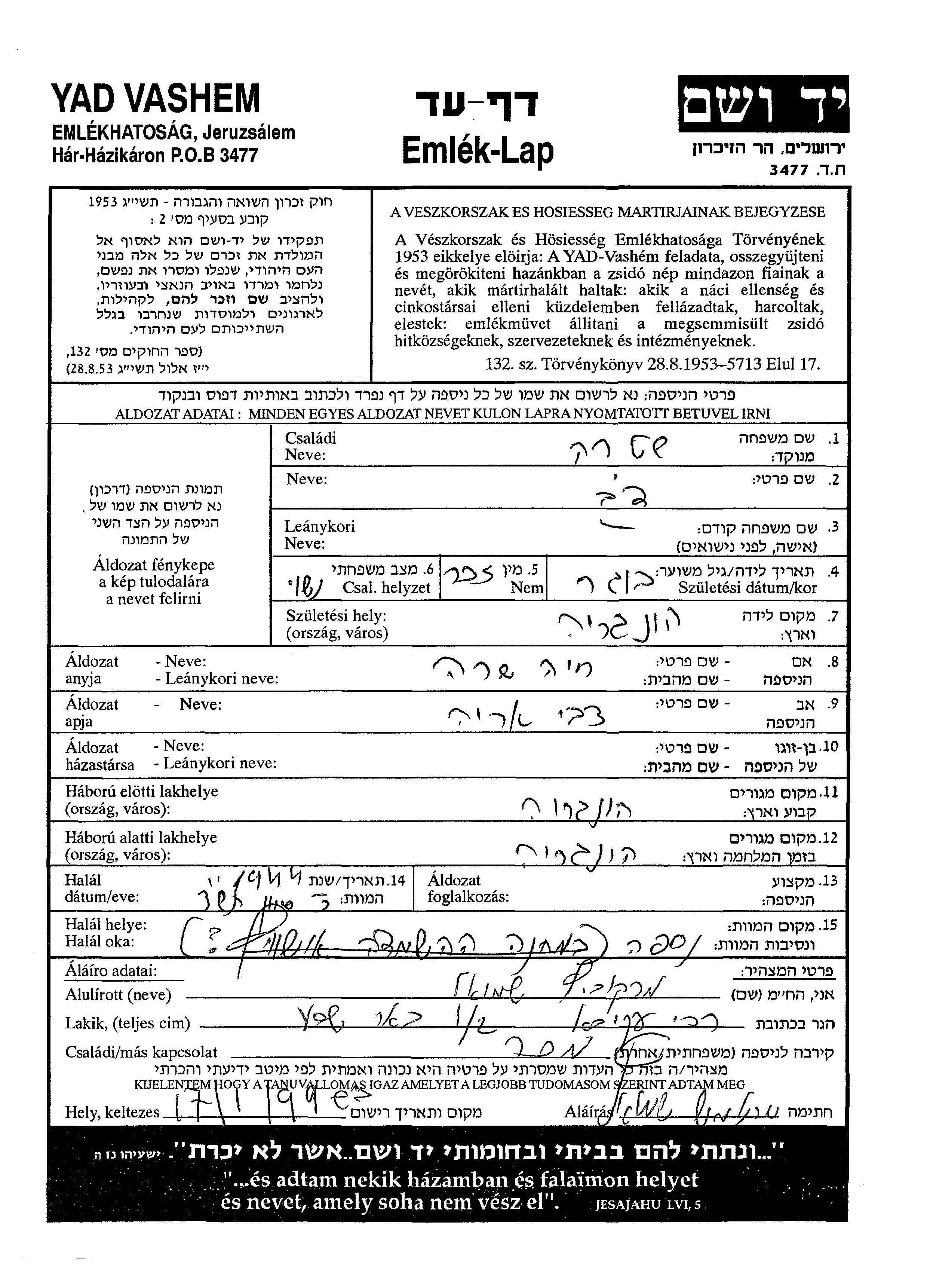 Yad Vashem - Pages of Testimony Names Memorial Collection