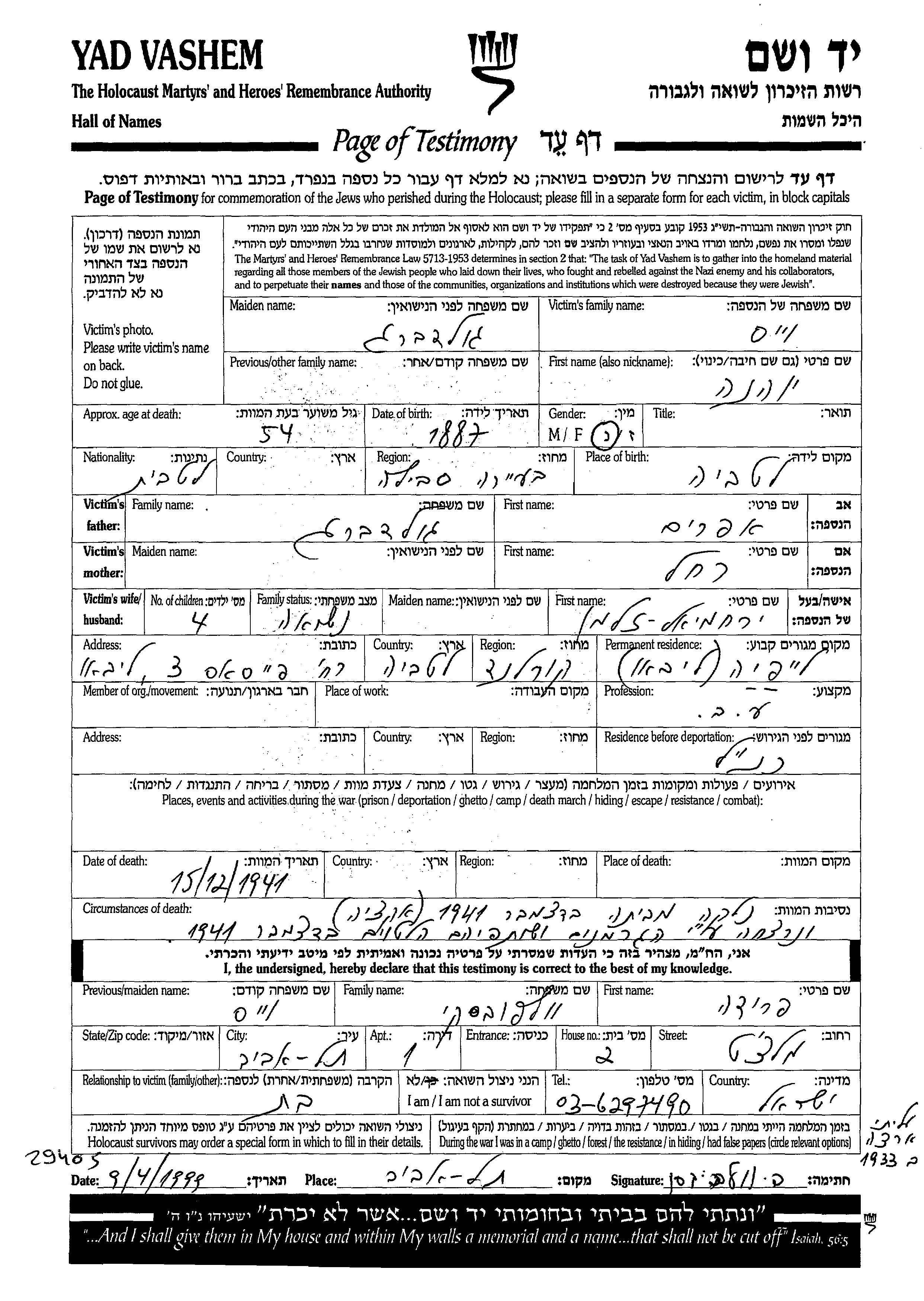 Recherche par date de la mort pendant la période de la Shoah: 1933-1945. Sélectionnez 'Exact'; dans la liste pour rechercher l'année exacte, ou sélectionner '+/- 2 ans'; ou '+/- 5 ans