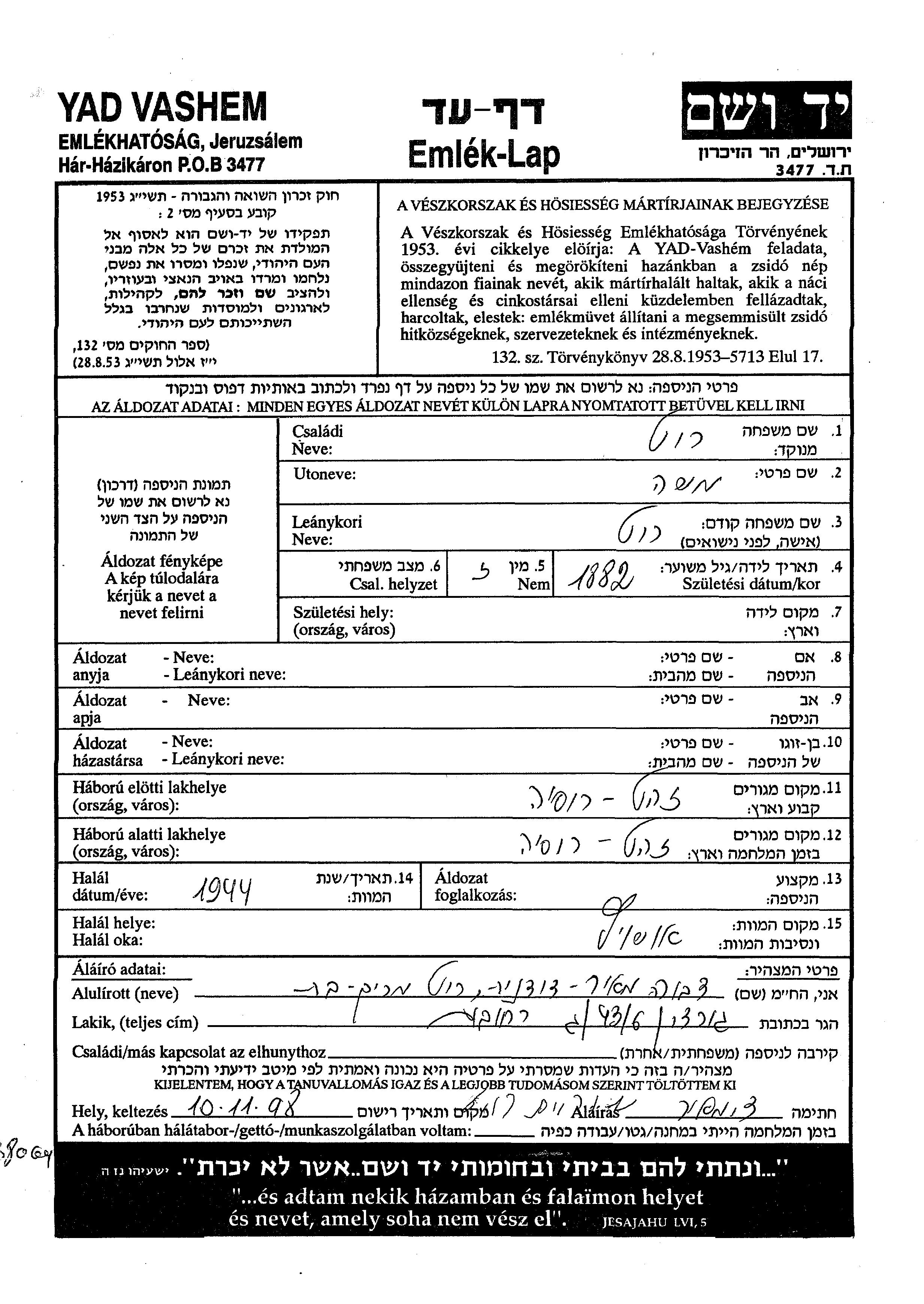 Yad Vashem - Pages of Testimony Names Memorial Collection