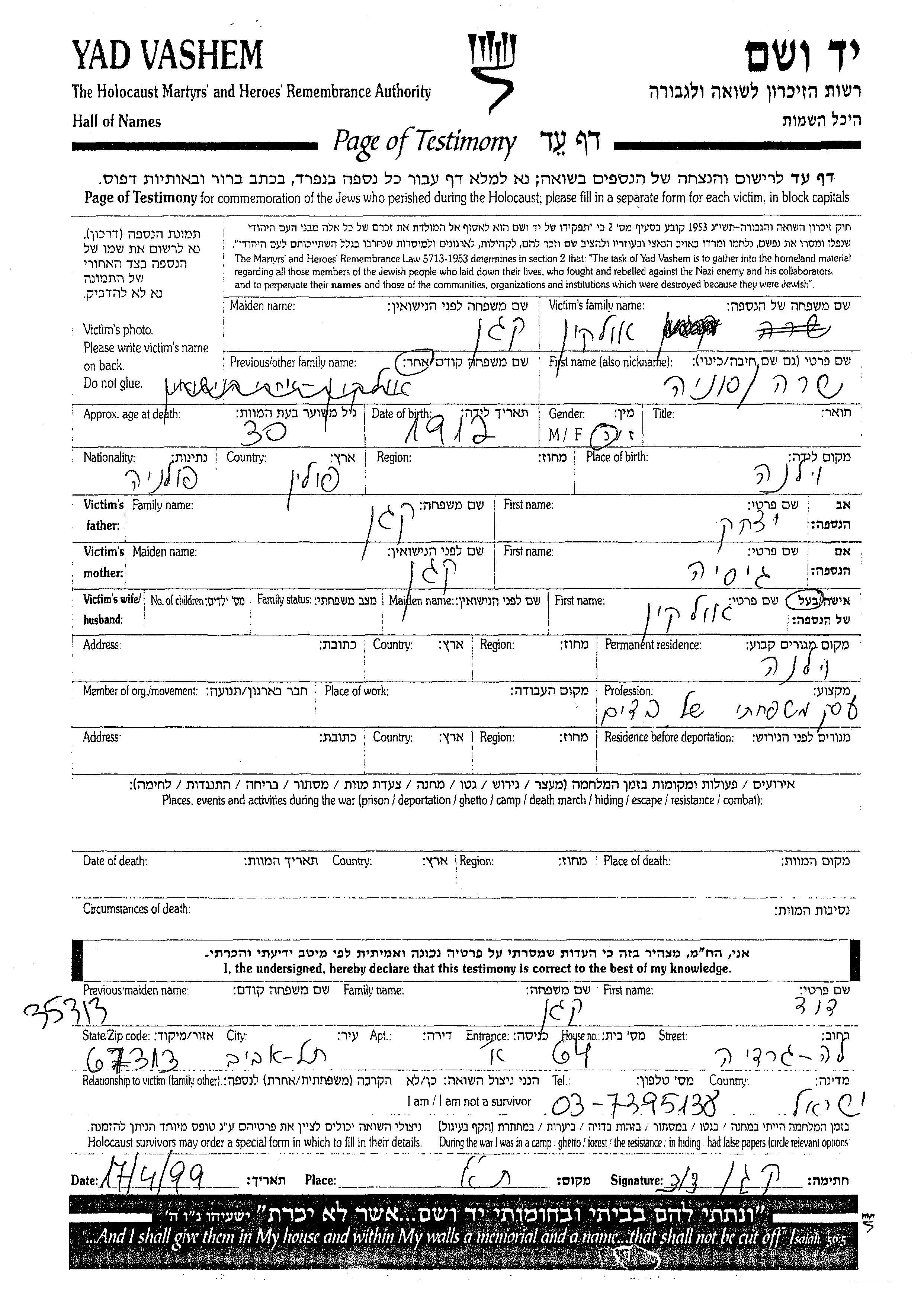 Yad Vashem - Pages of Testimony Names Memorial Collection