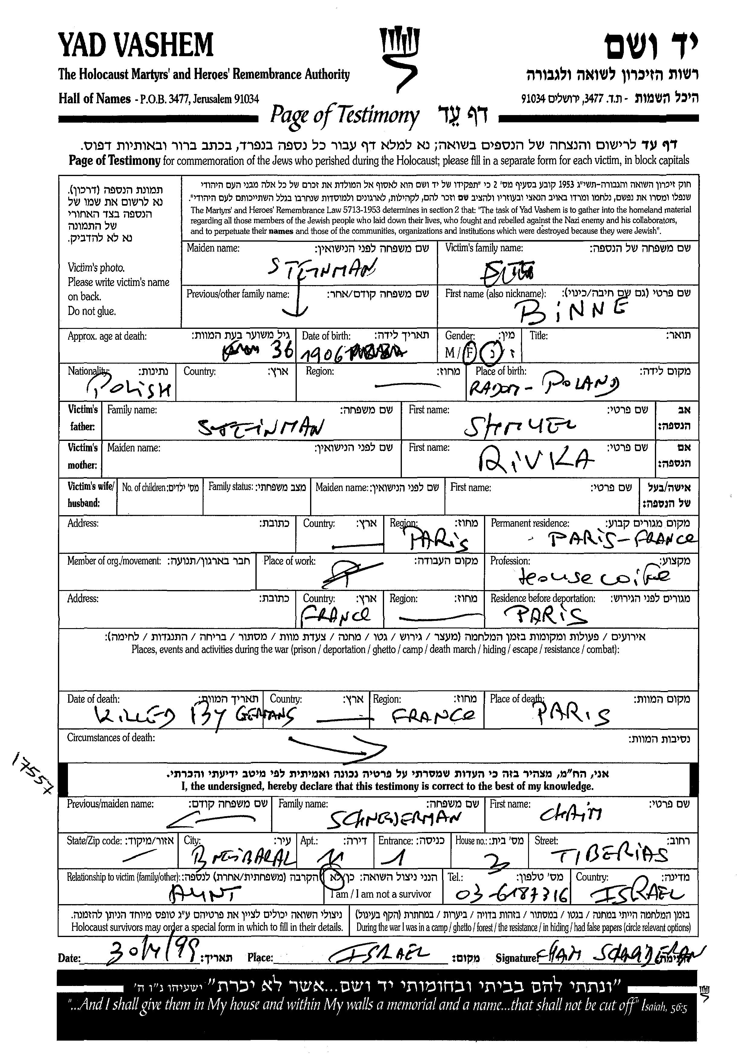 Yad Vashem - Pages of Testimony Names Memorial Collection