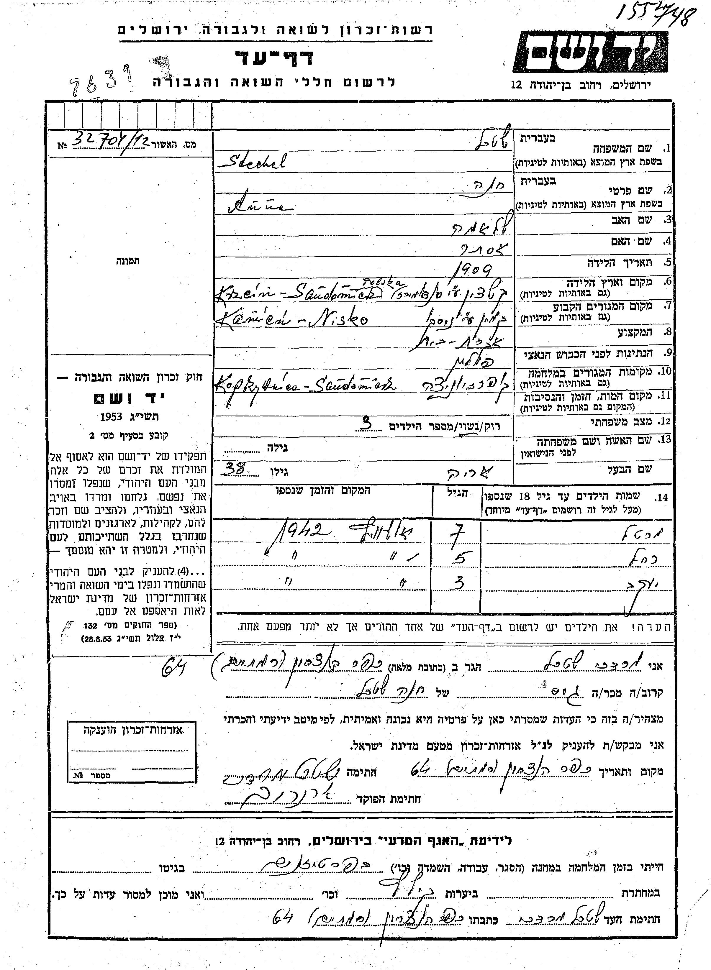 Yad Vashem - Pages of Testimony Names Memorial Collection