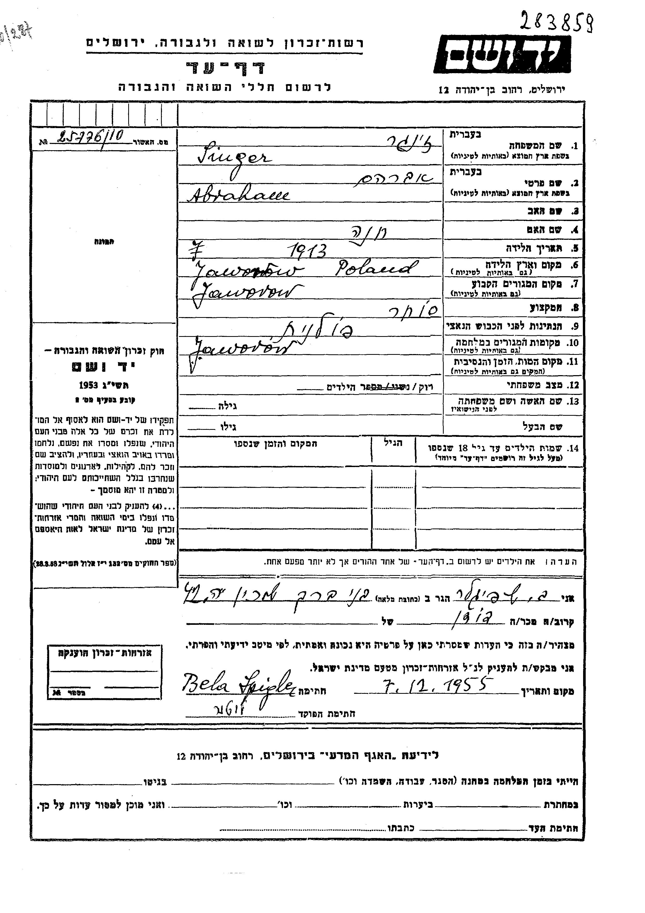 Yad Vashem - Pages of Testimony Names Memorial Collection