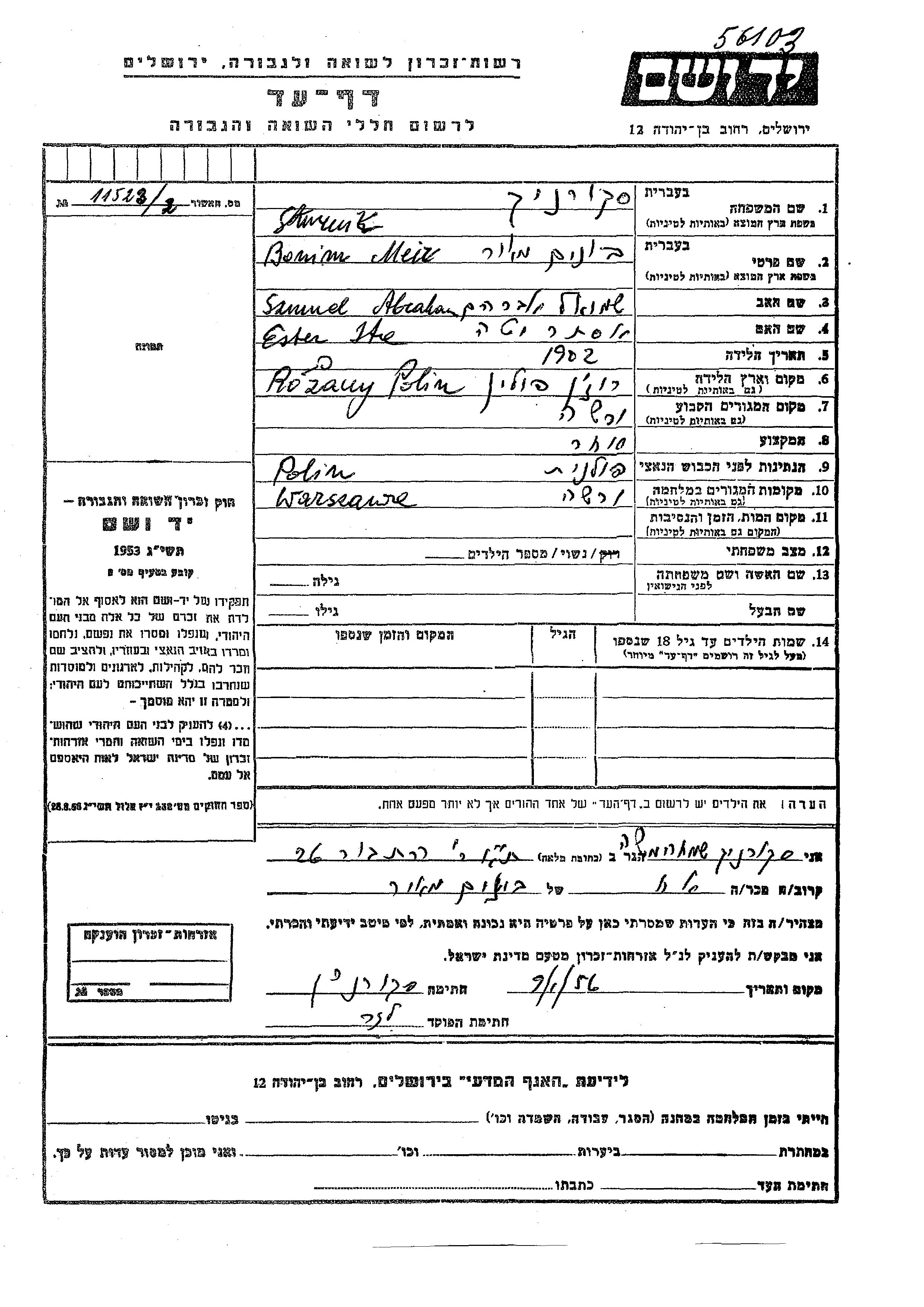 Yad Vashem - Pages of Testimony Names Memorial Collection