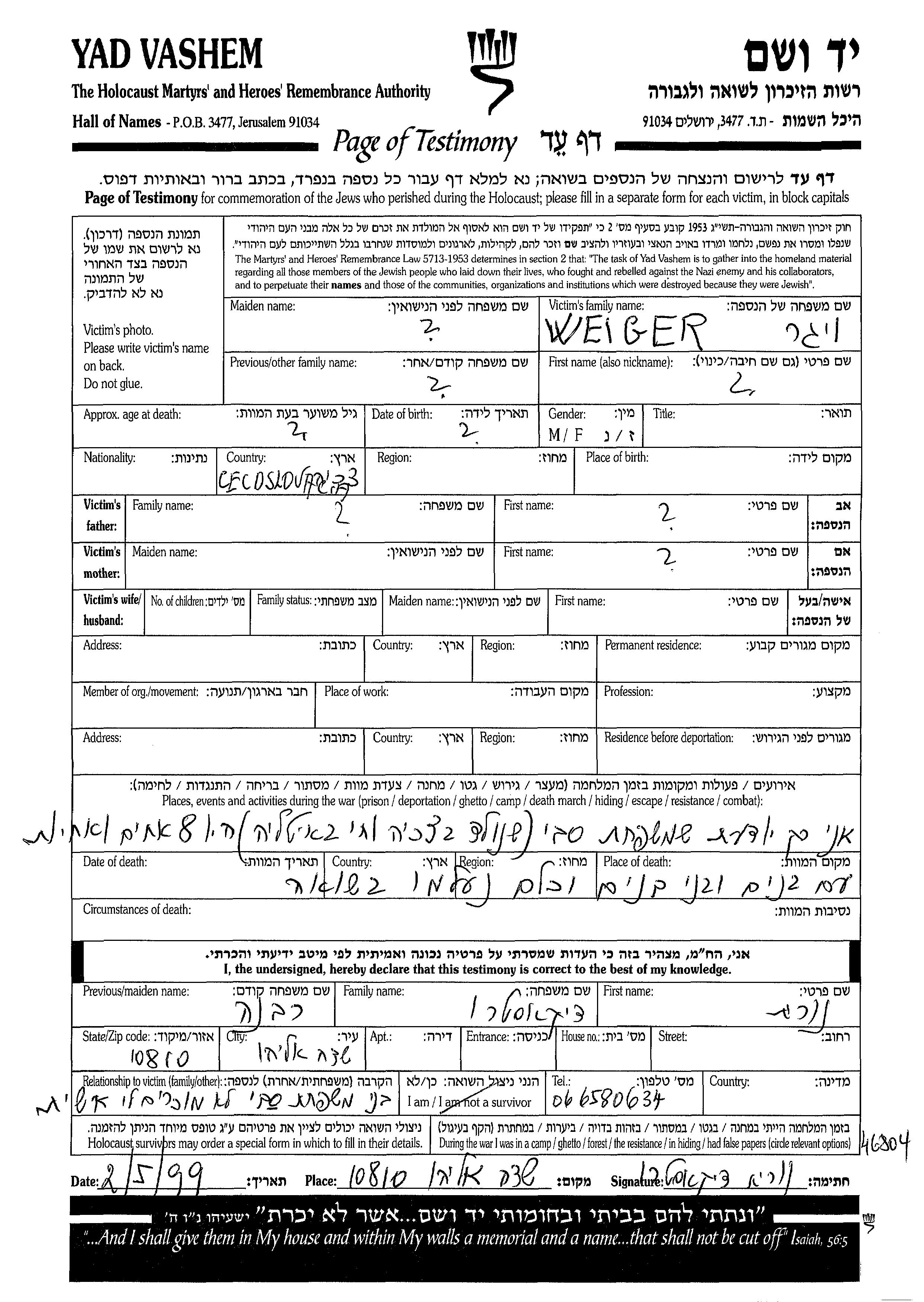 Yad Vashem - Pages of Testimony Names Memorial Collection
