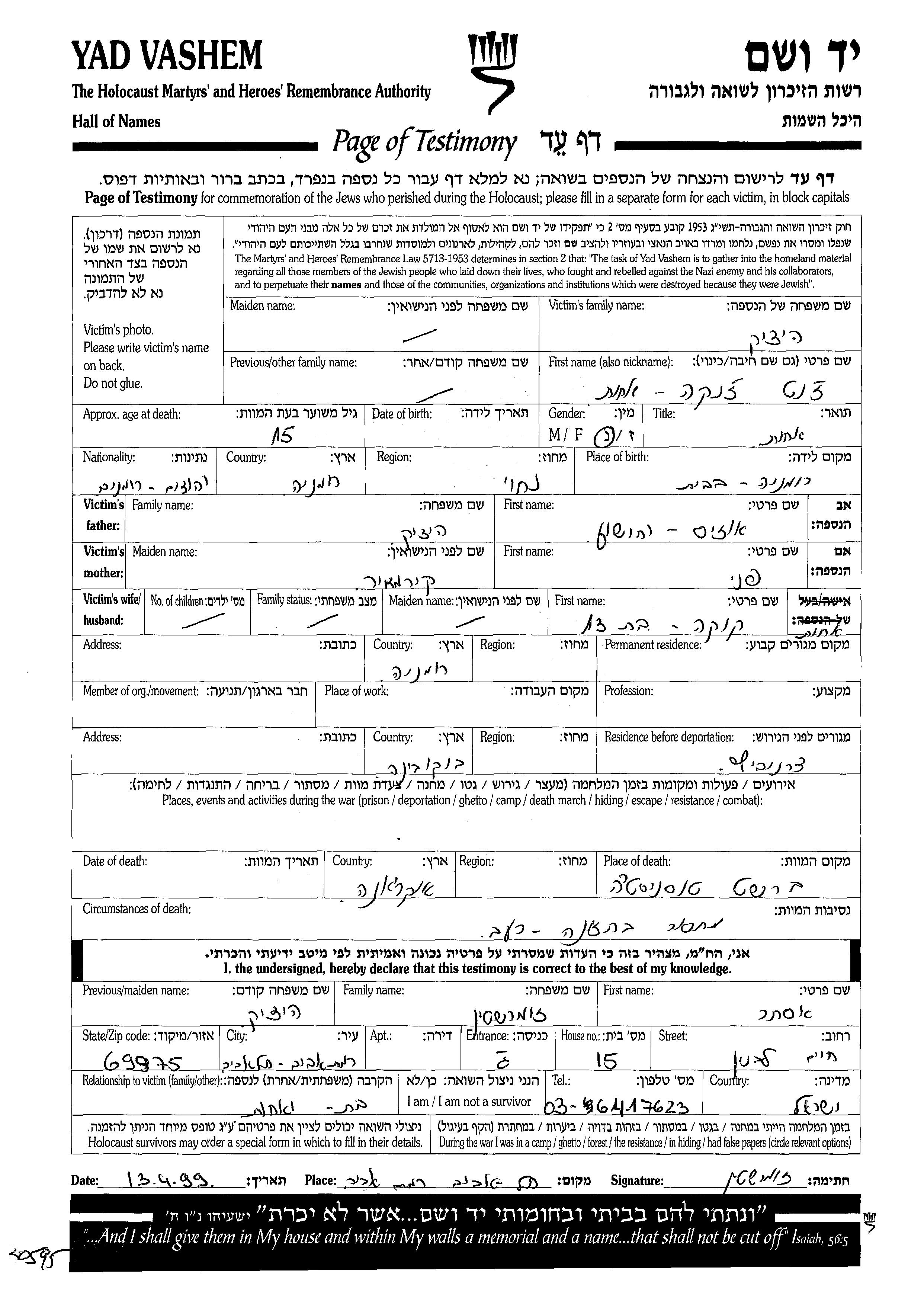 Yad Vashem - Pages of Testimony Names Memorial Collection