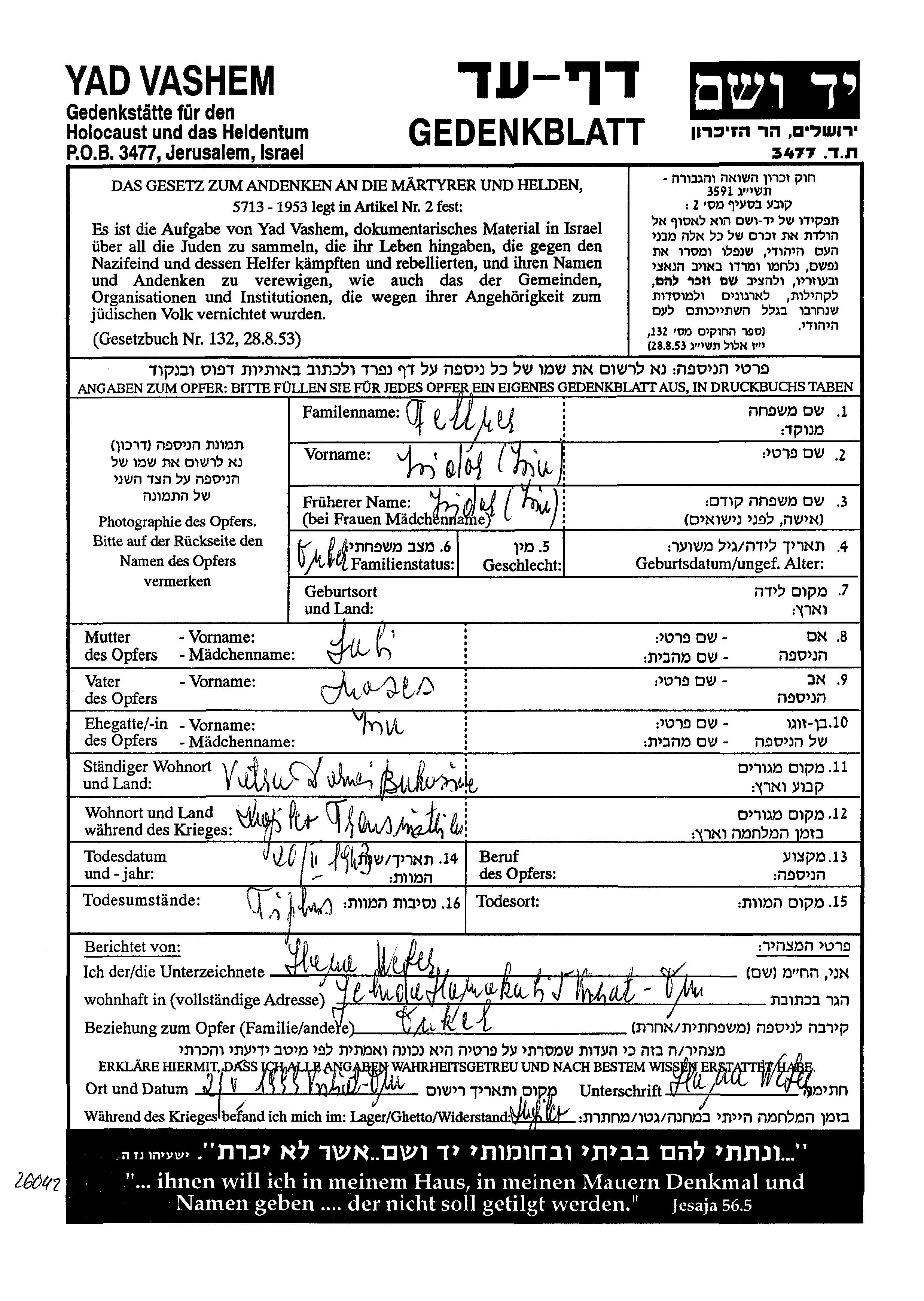 Recherche par lieu de résidence permanente avant la Shoah, ville, village, département, région ou pays.