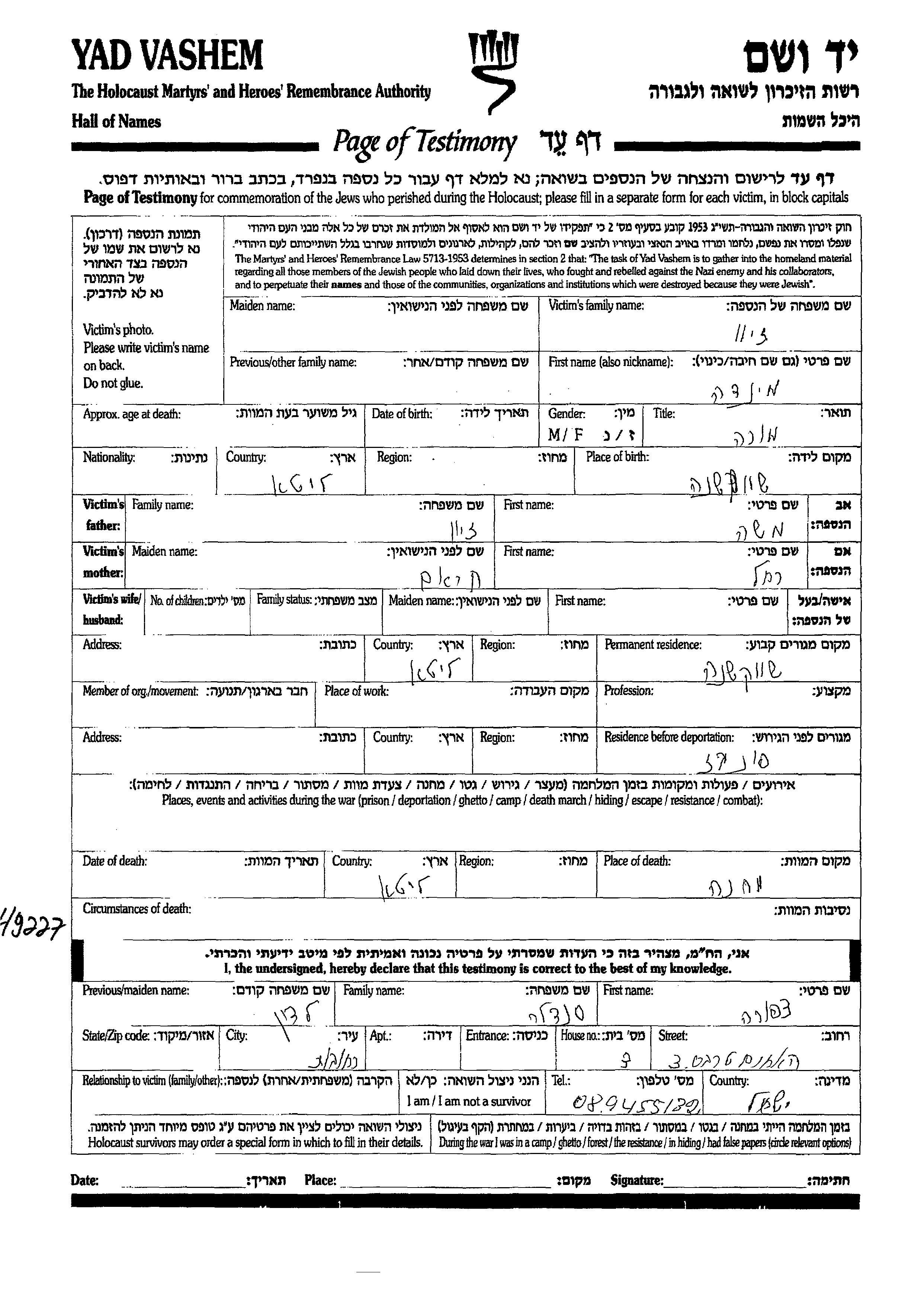 Yad Vashem - Pages of Testimony Names Memorial Collection